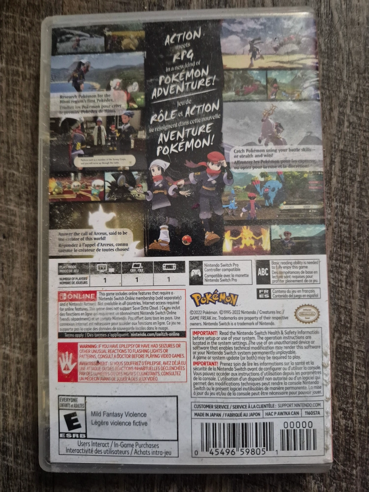 5Selling a copy of Pokémon Legends: Arceus for the Nintendo Switch! It's rated E for Everyone, and features mild fantasy violence. A great addition to any Switch collection!