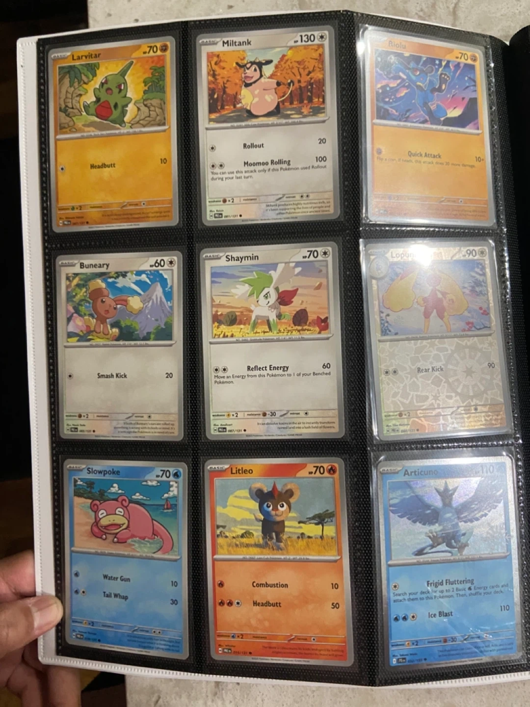 68Selling a binder full of Pokémon trading cards! Includes a variety of cards from different sets, including some rare and holographic ones. Great for collectors or anyone looking to get into the Pokémon TCG
