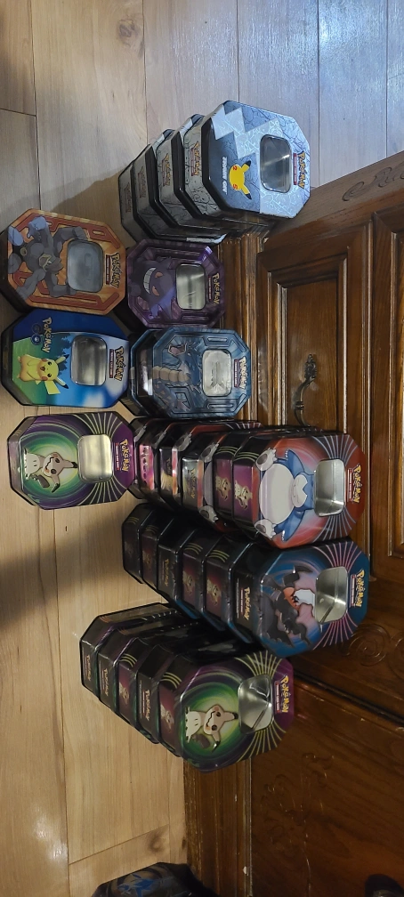 Selling a collection of empty Pokemon Trading Card Game tins. Great for storage or display! Each tin features different Pokemon characters. Perfect for collectors or anyone looking to organize their cards 6 mimikyu available 6 darkrai available 6 snorlax available 4 25th anniversary 2 gyarados 1 gengar 1 machamp 1 Pokemon go pikachu 2.50 each or take all 27 for 60$