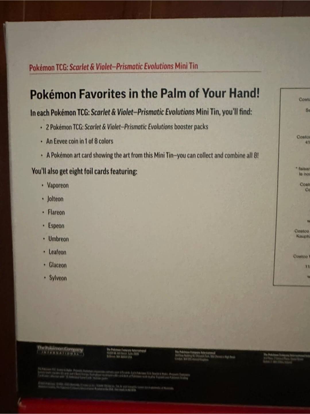 152 Pokemon TCG: Scarlet & Violet - Prismatic Evolutions Mini Tin Unweighted - Brand new Includes (in 1 box) 8 tins (2 packs in each tin) All 8 Evee evolution foil cards 8 Evee coins (1 per tin) A Pokémon art card showing the art from its Mini Tin 2 in stock, each is $240 - retails for $250 Come pick up and check it out Give me your best offer