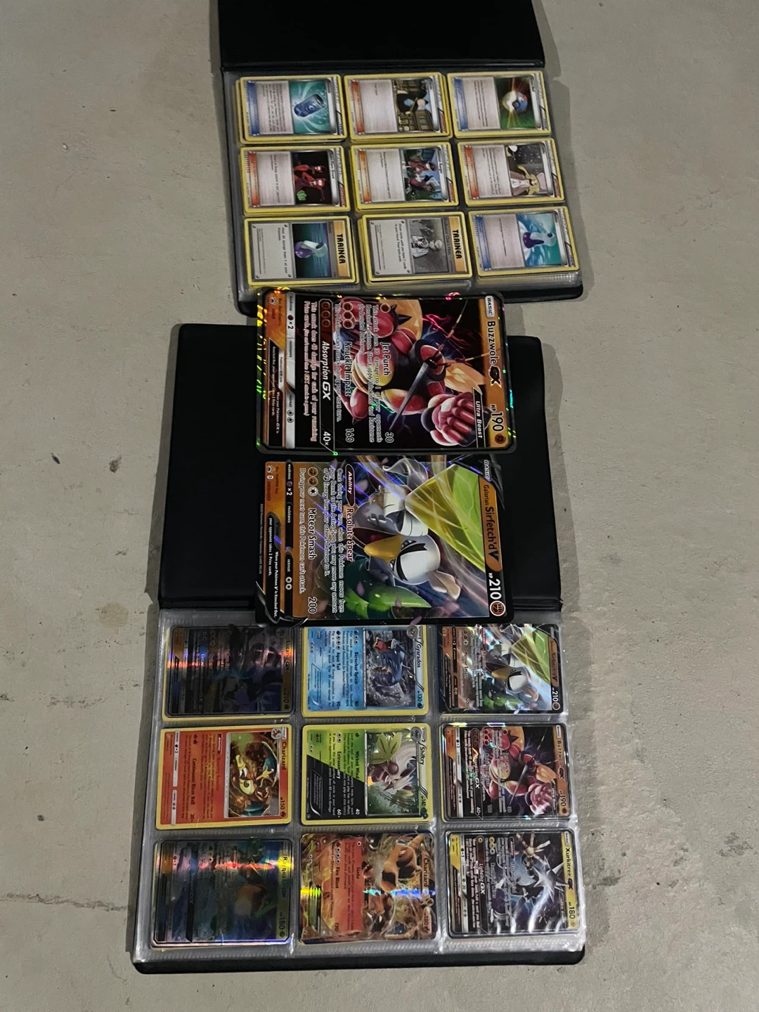 Selling 2 Pokemon trading card binder filled with various cards. Perfect for collectors or those just starting out! The binder is in good condition and contains a variety of Pokemon cards