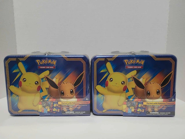 Original print *** SEALED *** NEW 2 BOXES AVAILABLE 340$ for each 500$ for both! ObO This sturdy metal case contains more than a dozen Pokémon goodies, including many not found anywhere else: 5 Pokémon TCG booster packs (Each Sun & Moon Series pack contains 10 cards and 1 basic Energy. Each XY Series pack contains 10 cards.) 3 foil promo cards featuring Articuno, Zapdos, and Moltres A cool Pokémon coin 2 colorful sticker sheets A mini portfolio to store your favorite cards A Pokémon notepad and 4 pencils A code card for the Pokémon TCG Online ***Side note: I will only reply and meet Sunday to Friday. I will do combo deals with my other listings, so check them out. Thanks!