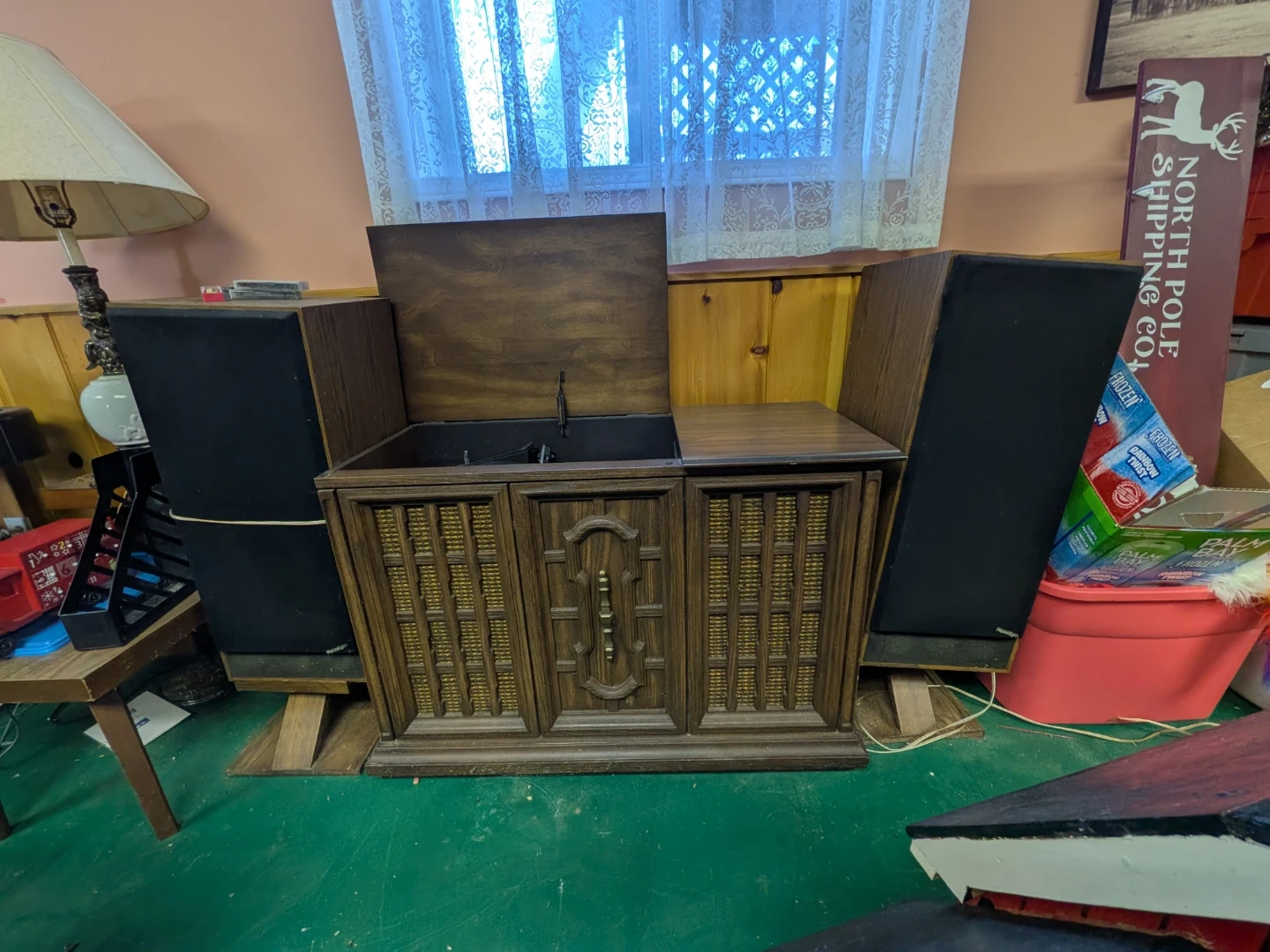 Vintage Philips Console Record Player with Speakers