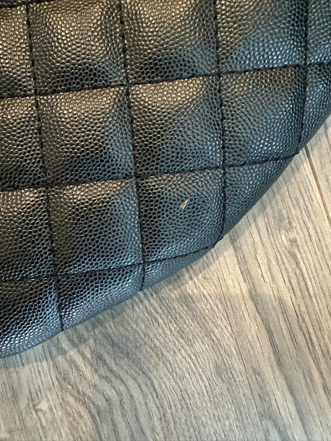 Has a mark on the back of the fanny pack and exposed lining inside the bag