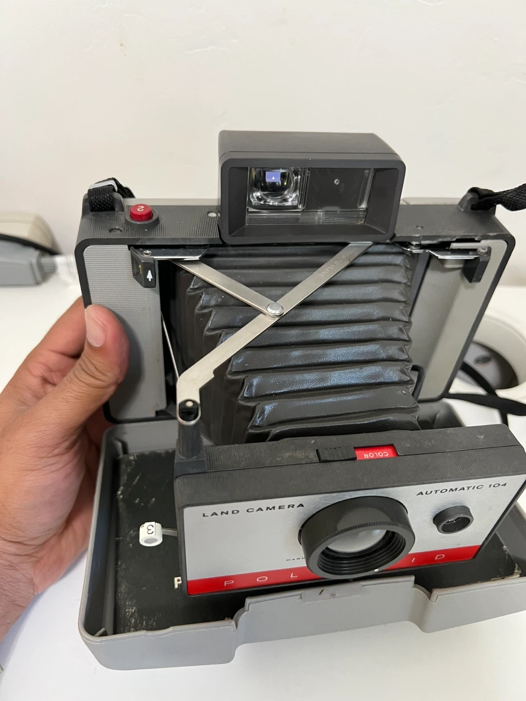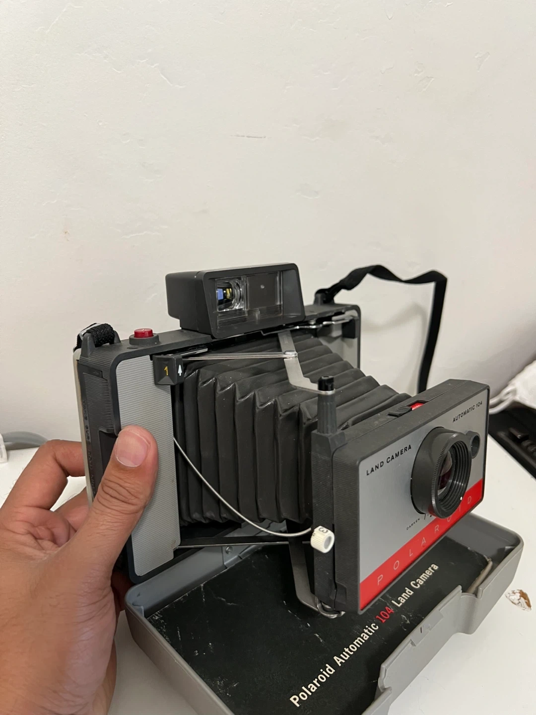 26Selling a Polaroid Automatic 104 Land Camera! This vintage camera comes with its original case. It's a great find for photography enthusiasts or collectors of vintage items. It's in good condition for its age and ready for a new home!