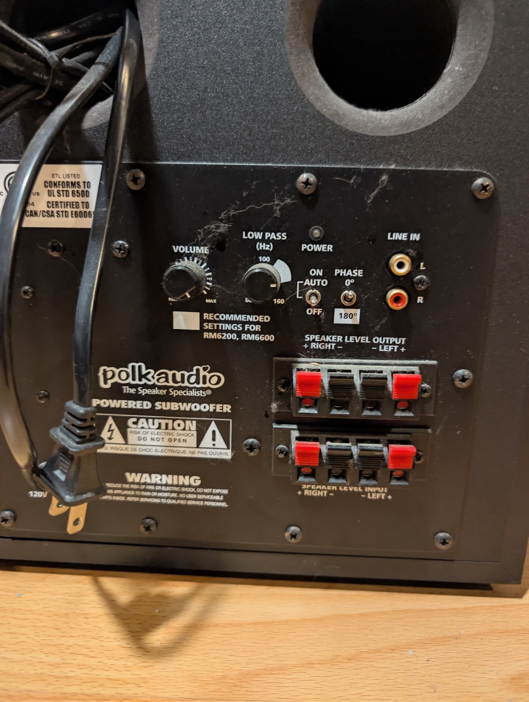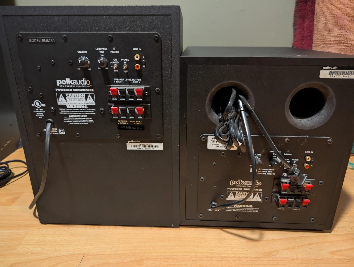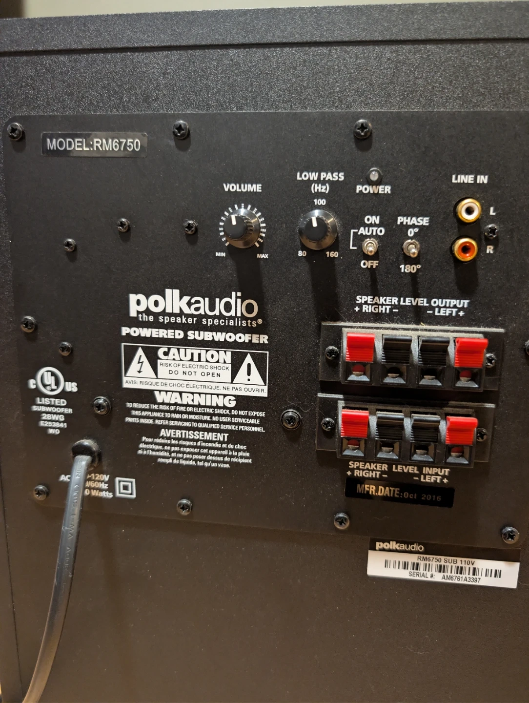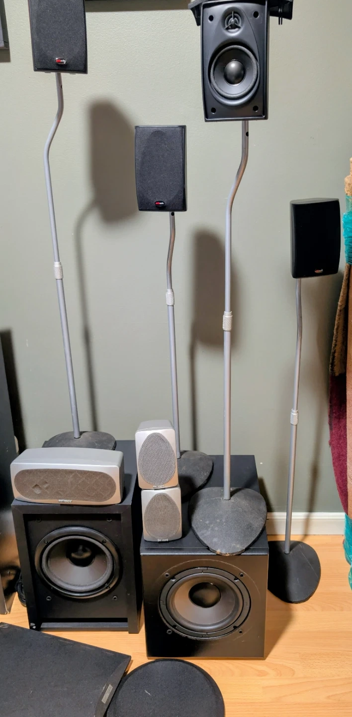 88Polk audio home theater system. Two sub woofers, 7 speakers. All works great for that surround sound.