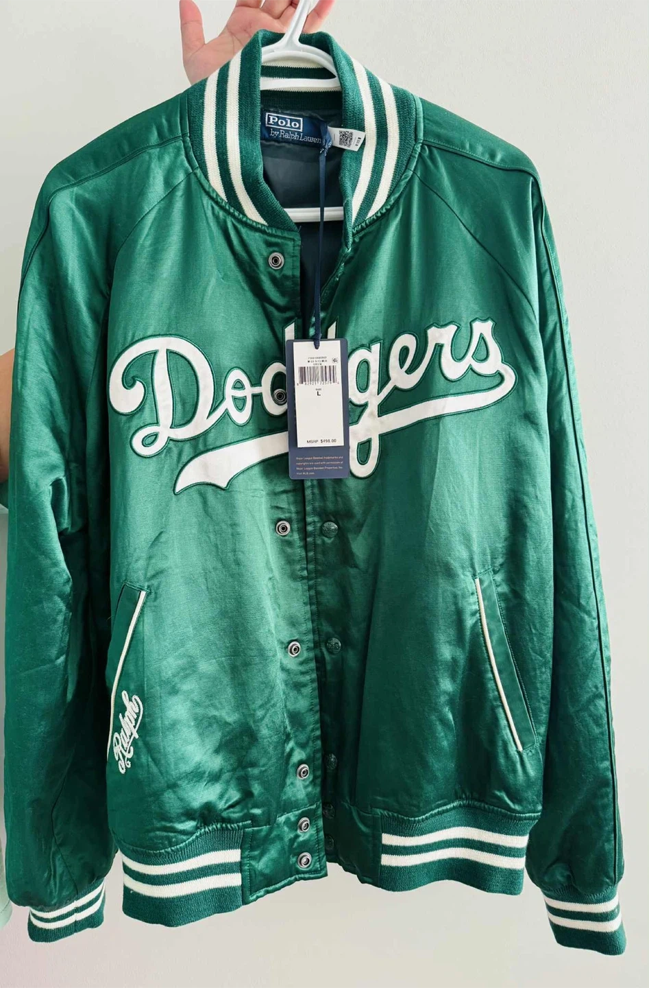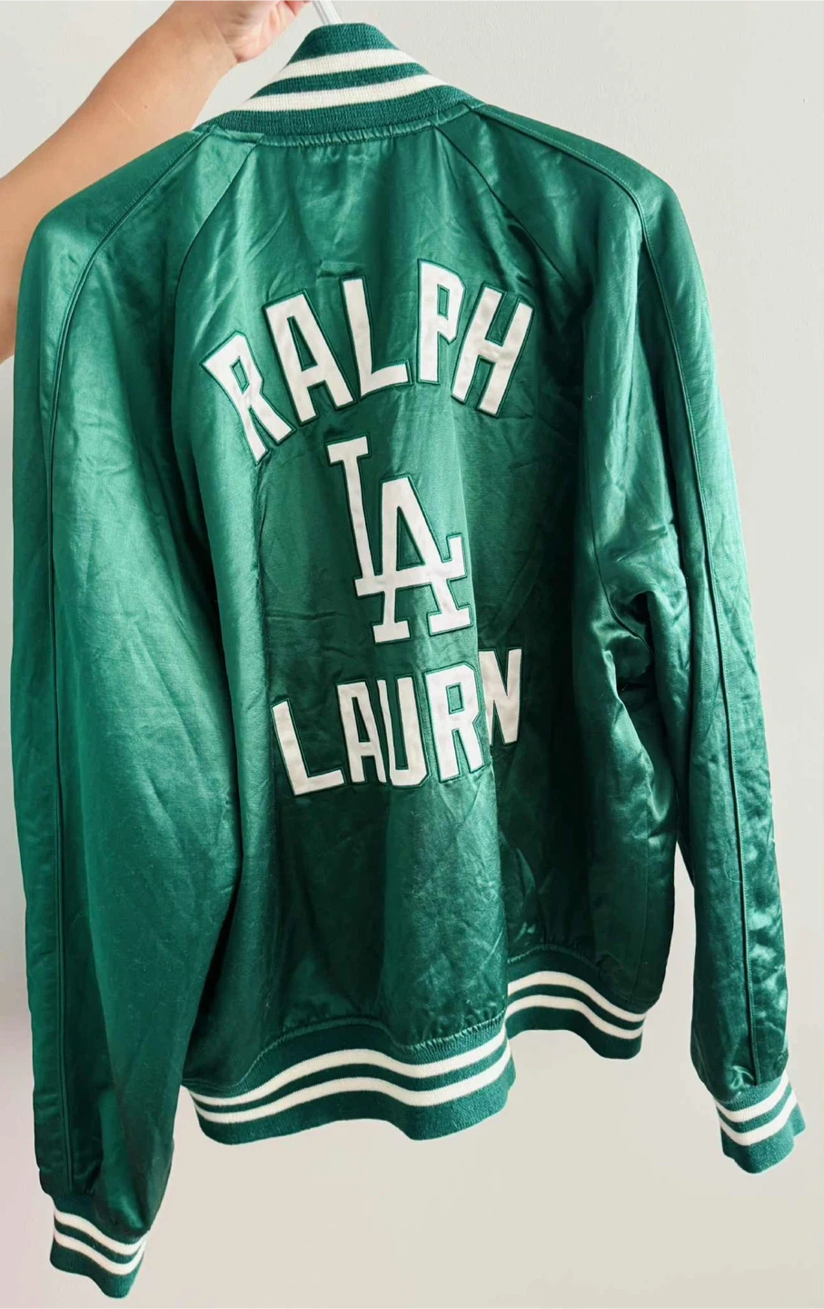 10Selling a Polo Ralph Lauren Dodgers satin jacket in a beautiful green colour! This jacket is a size large and features the Dodgers logo prominently. The original price was $498.00