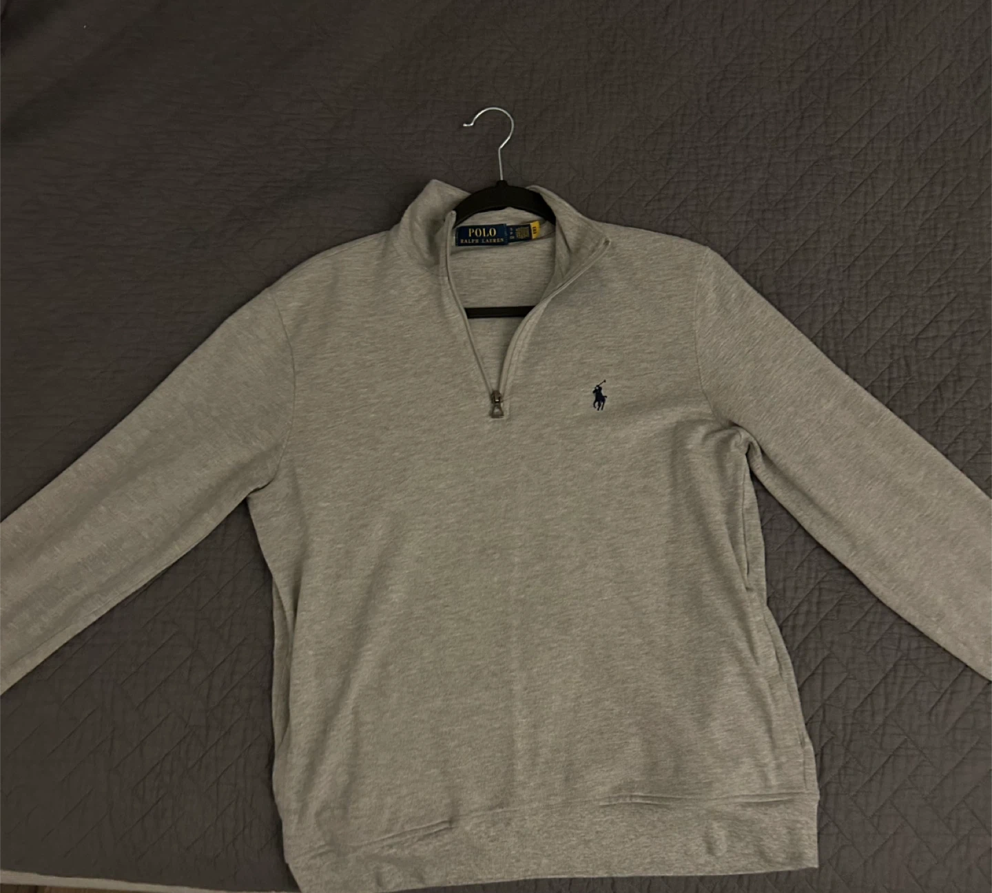 19Selling a Polo Ralph Lauren 1/4 zip pullover in grey. It's in great condition and perfect for layering! The classic Polo logo is embroidered on the chest. Stylish and comfy!