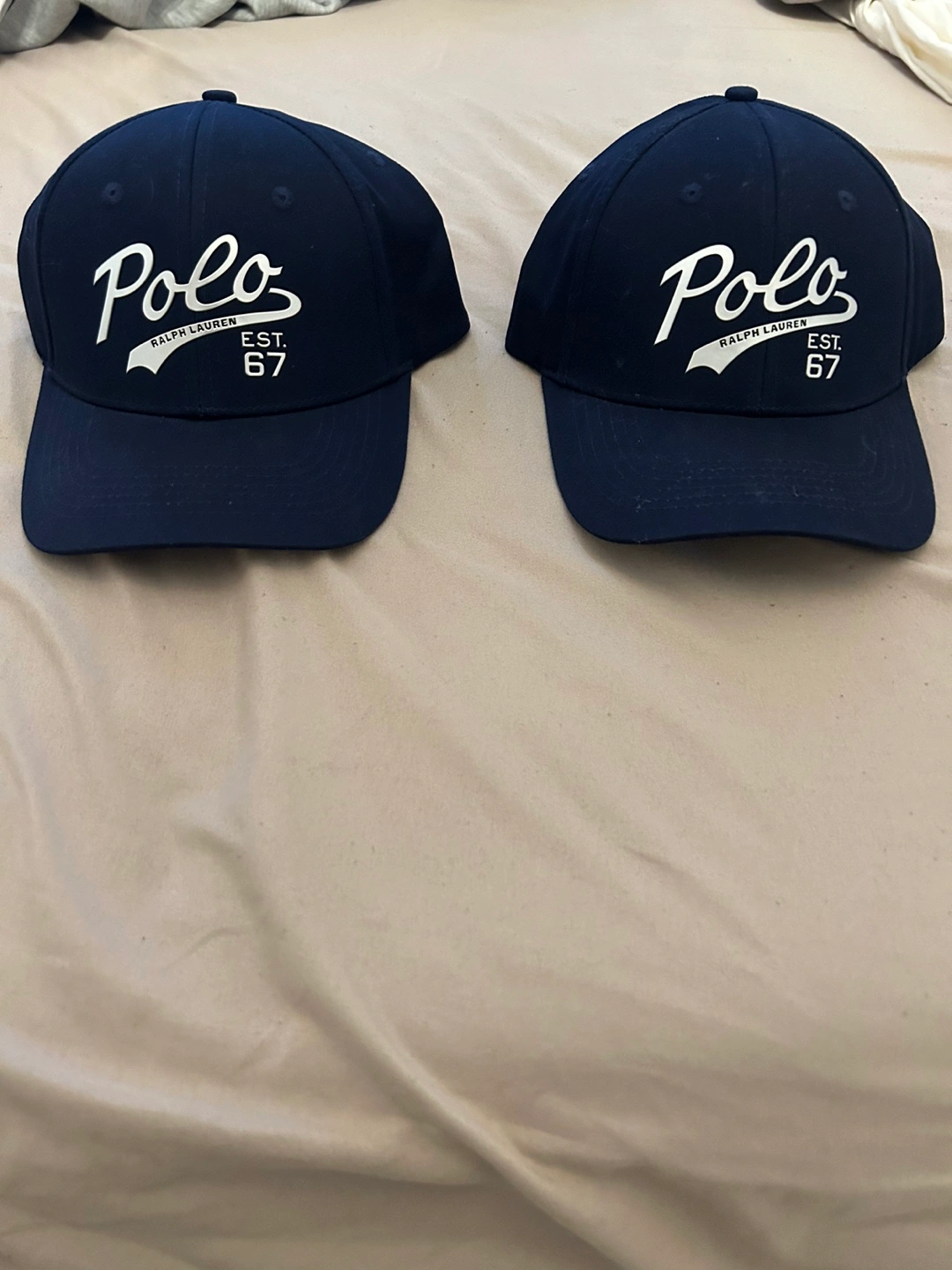- 35$ each - Brand new - Never used - 2 available - Can do a deal for both - Dm for pickup Selling a couple of Polo Ralph Lauren baseball caps in navy blue! They're in great condition and ready to wear. The classic Polo logo adds a touch of style to any outfit. Perfect for sunny days or just adding a sporty vibe to your look