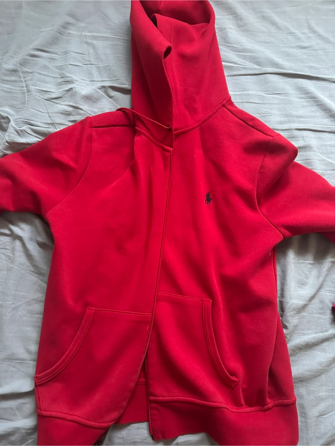 Selling a Polo Ralph Lauren hoodie in red, size medium. It's in great condition and has the classic Polo logo. Perfect for staying warm and stylish!