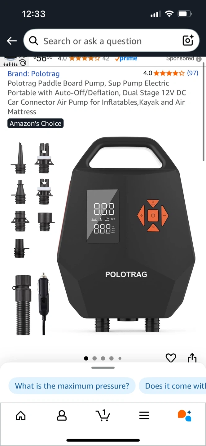 20Selling a brand new Polotrag PLG-0110 SUP electric air pump! It's portable with auto-off/deflation and has a dual stage 12V DC car connector. It also features an LED emergency light, fast inflation, and a digital display. Originally bought for $59.99.