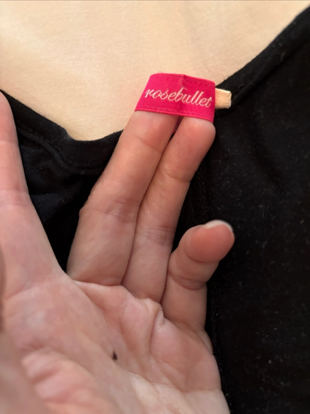 Rosebullet black A line t-shirt with a unique design. The material is 65% viscose and 35% cotton.
