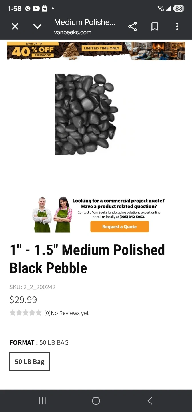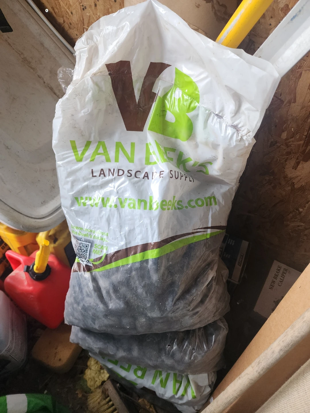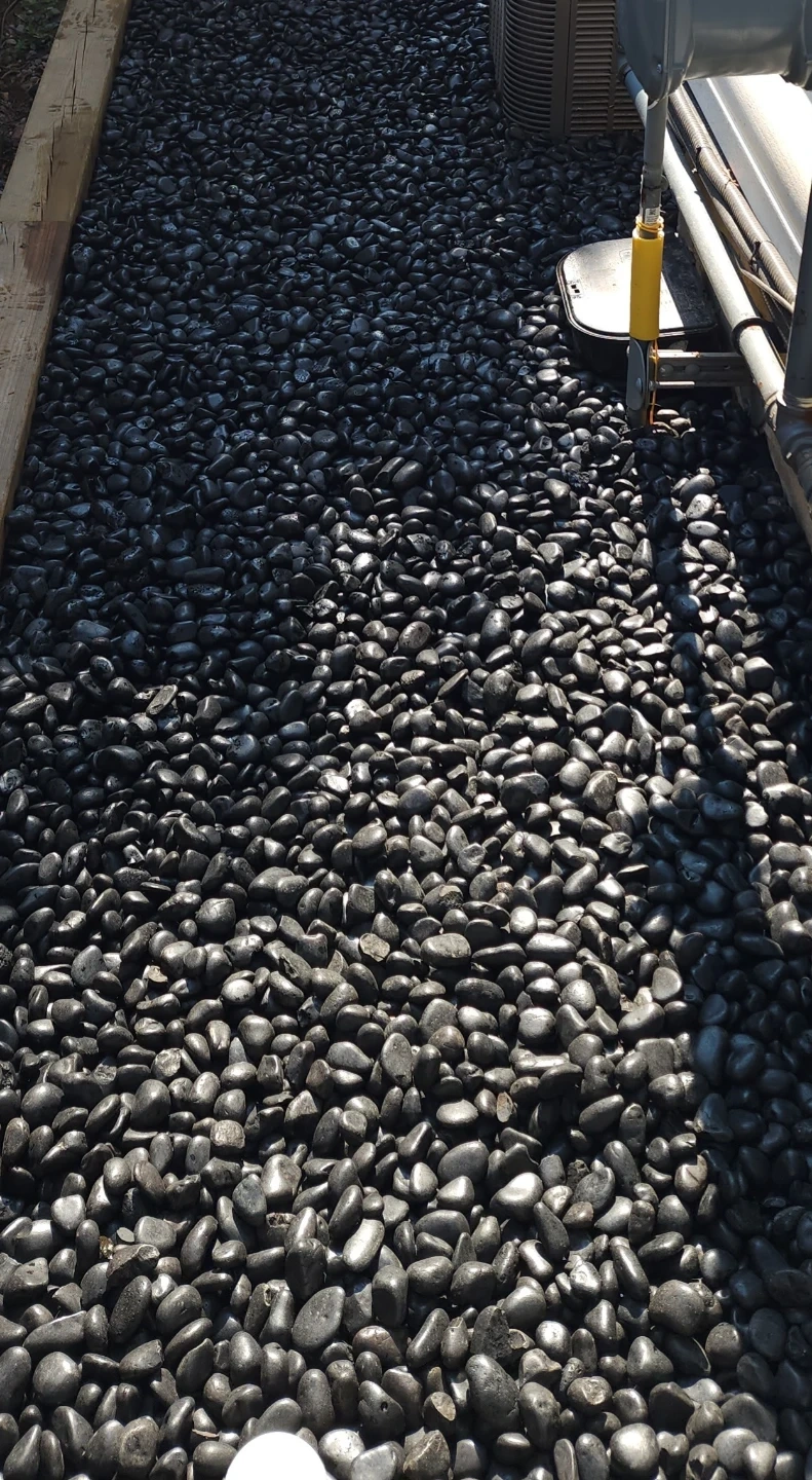 Black polished pebbles from Van Beek's Landscape Supply. These are 1" to 1.5" in size. They're great for landscaping projects. Plenty of bag's available!
