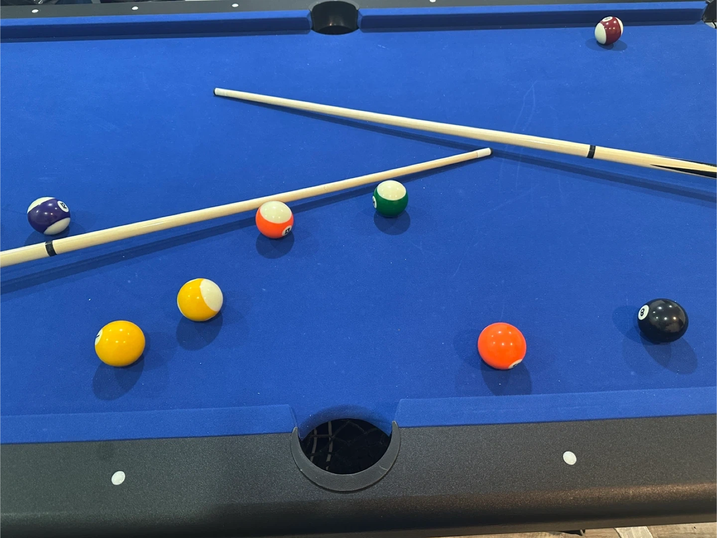 Selling a pool table complete with cues and balls! It's in great shape and ready for some fun games with friends and family