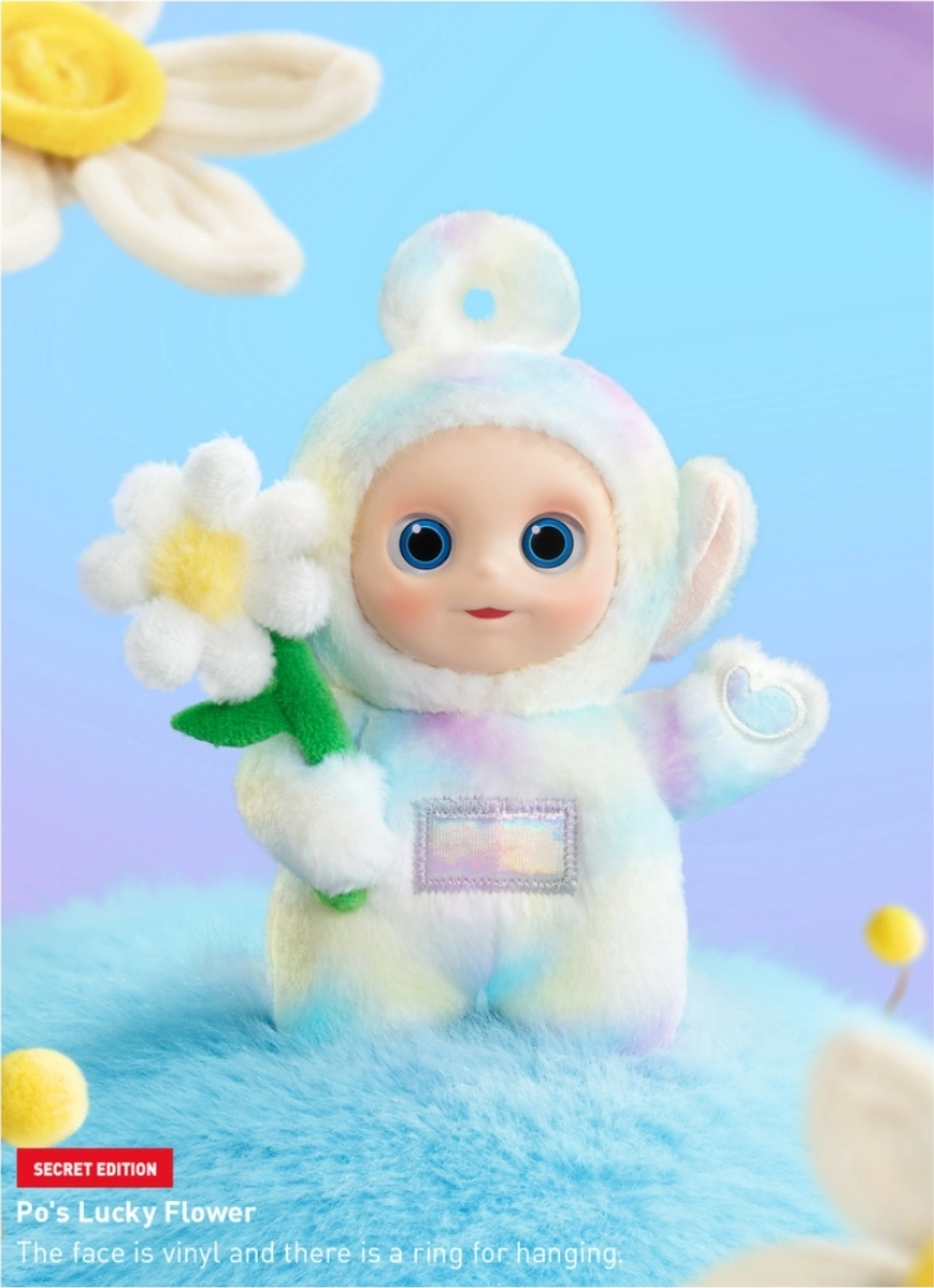 I popped the secret! Po's Lucky Flower π RARE in brand new sealed box authentic from Pop Mart Looking to add a touch of nostalgia to your keys or bag? This Teletubbies "Say Hello" series keychain from Pop Mart is just the thing! This is Po's Happy Flower version. The keychain includes a hanging ring for display and is between 13-15cm (5.12-5.91 inches) in height. The shell is made of polyester, PVC, and PET, with polyester and iron wire stuffing. Comes in the original box!