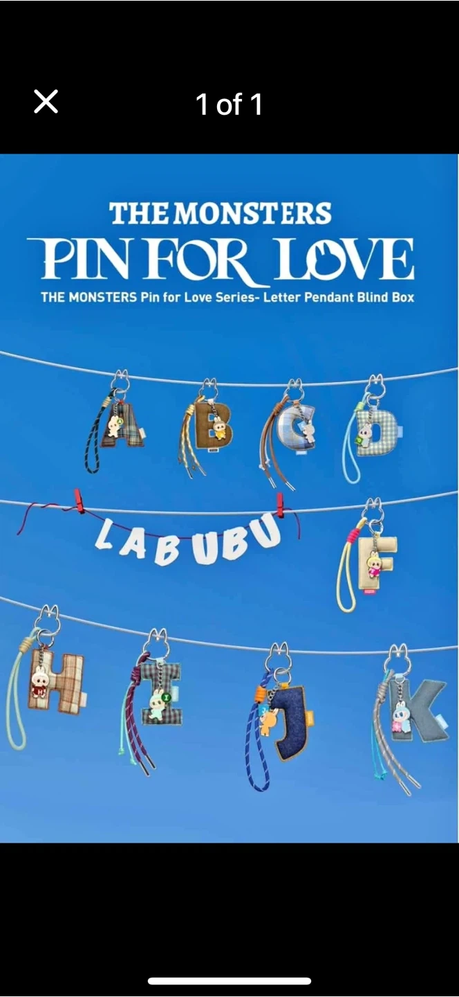 5Selling several cute letter pendants from POP MART's The Monsters Pin for Love series! I have A C D E F G H I J K N V. They come with a little character charm and a cord. Perfect for adding a touch of fun to your keys or bag!