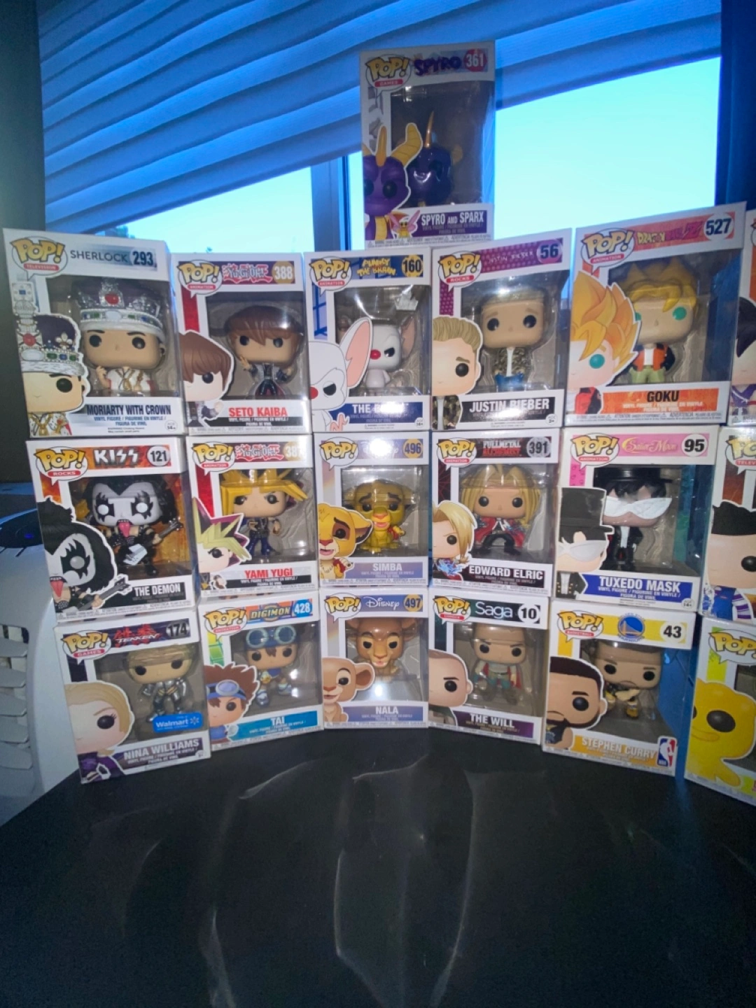 76Lot of 16 Pop! Vinyl figures. Includes characters from various franchises including: Sherlock, Yu-Gi-Oh, Disney, The Lion King, Dragon Ball, and more. All figures are in their original boxes. Message for price