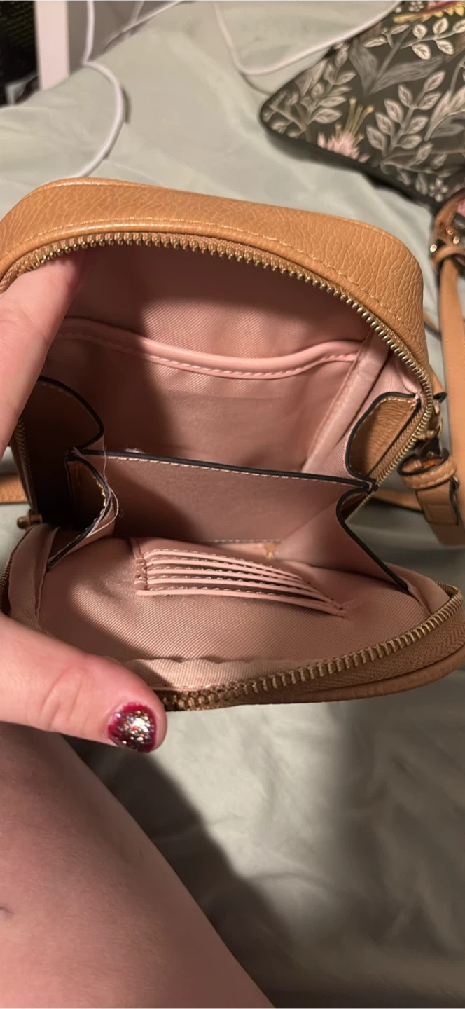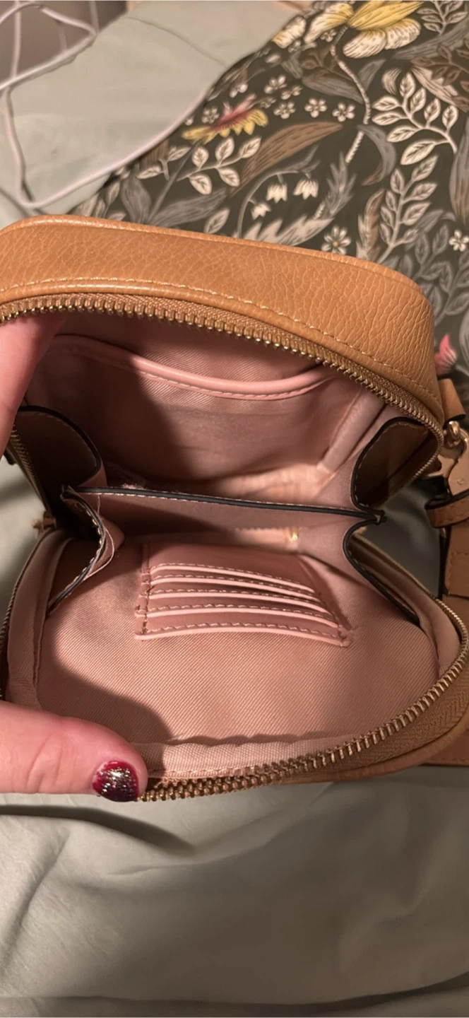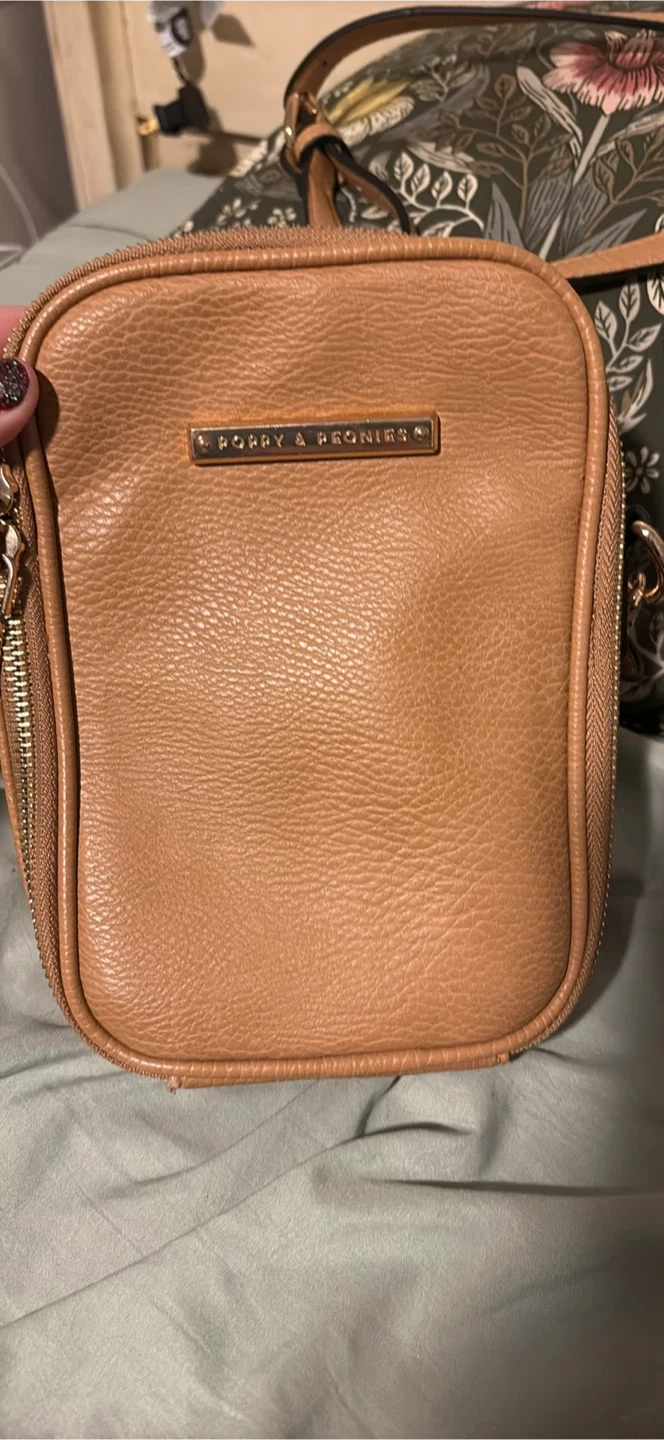 65Selling a cute Poppy & Peonies crossbody bag in caramel colour! It's in great condition and perfect for carrying your essentials. The interior has a few compartments to keep you organized.