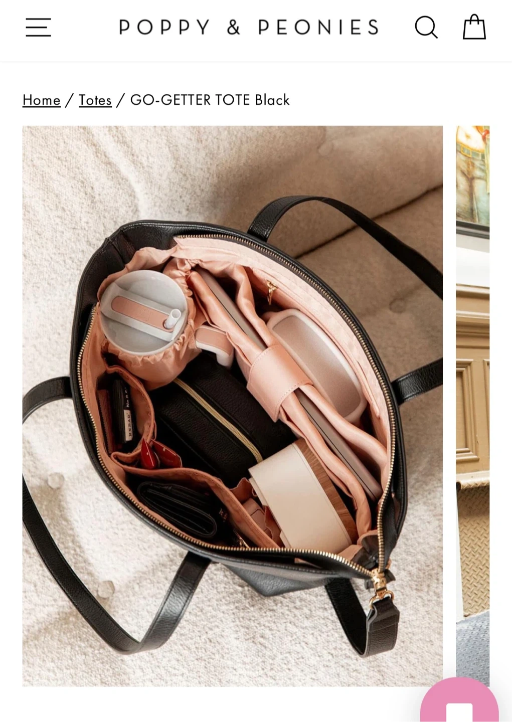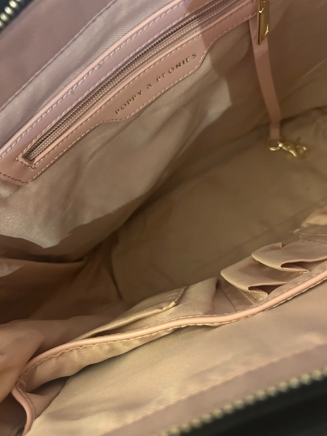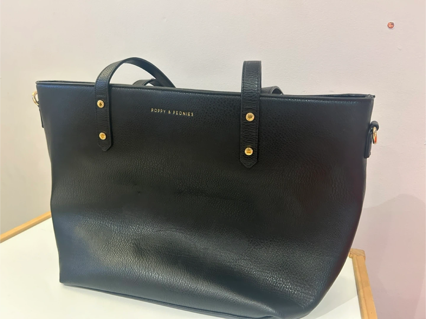 Looking to sell my Poppy & Peonies Go-Getter Tote in black! It's a stylish and functional bag, perfect for everyday use. The interior is a lovely light pink colour. Originally bought for $125 CAD.
