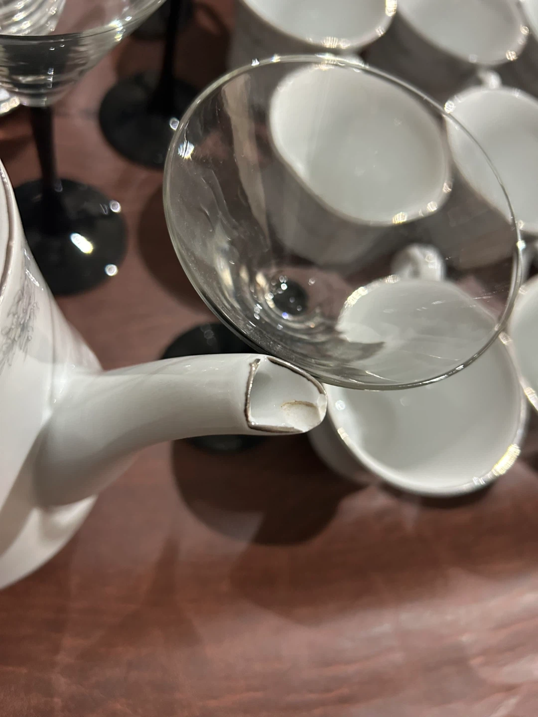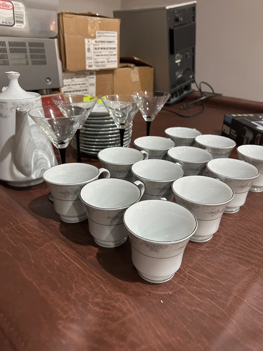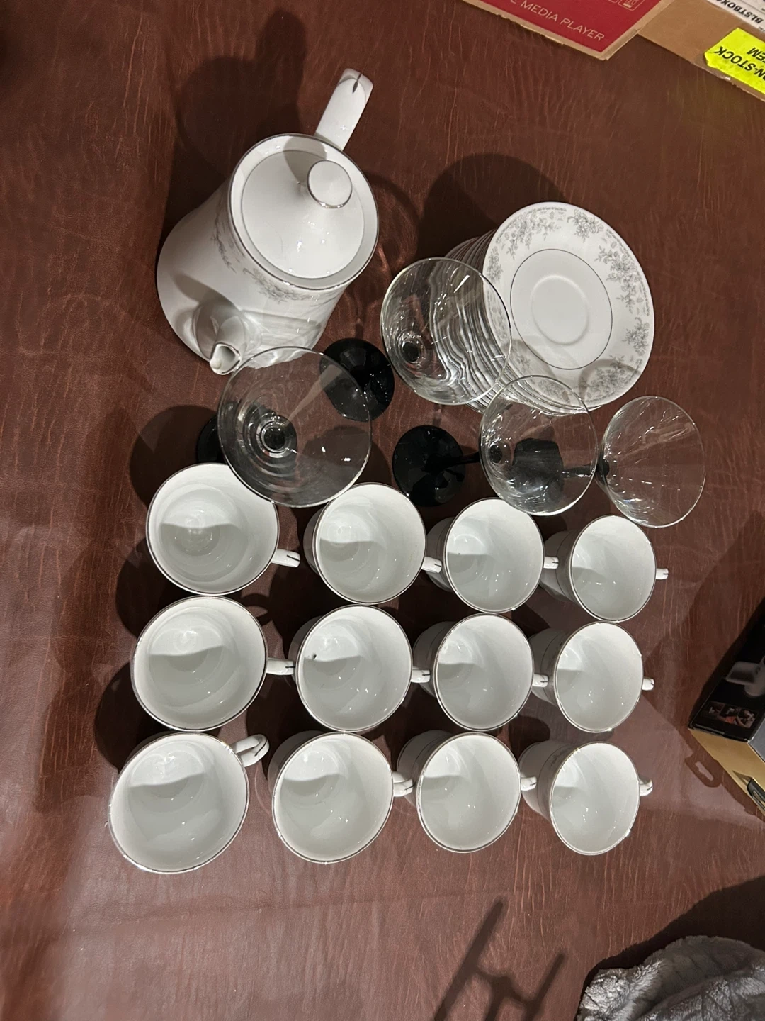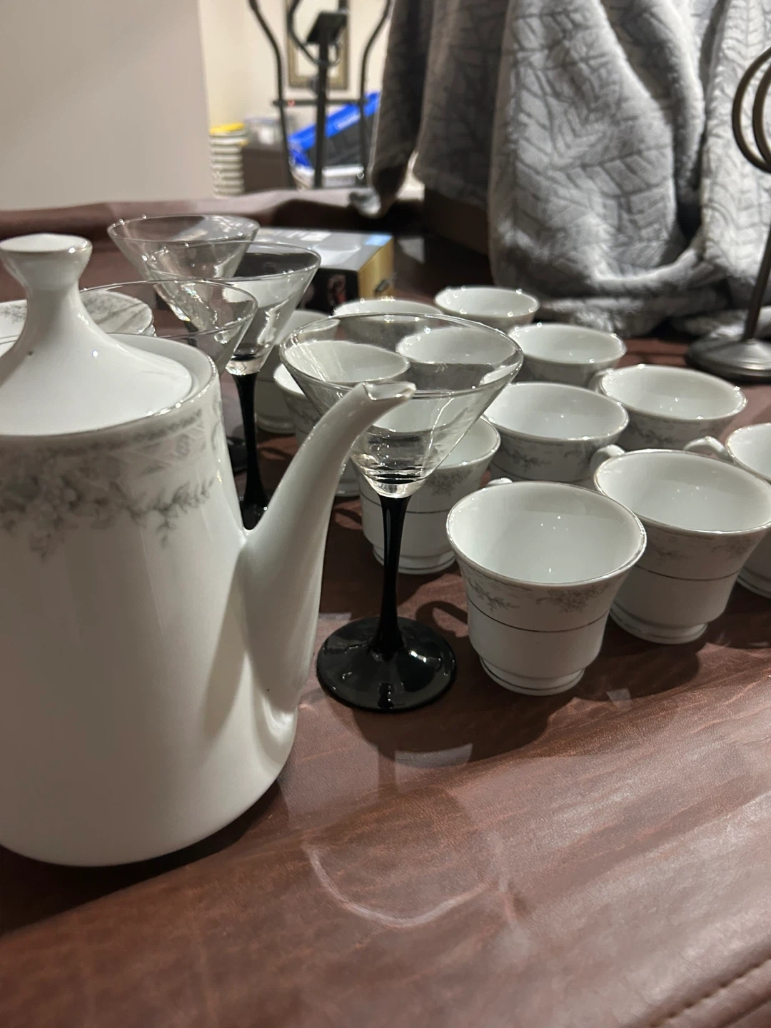18Selling a lovely porcelain tea set featuring a delicate floral design. Includes cups, saucers, a teapot, and martini glasses. Perfect for hosting afternoon tea or adding a touch of elegance to your dining experience. Want gone as soon as possible will take any offer into consideration.