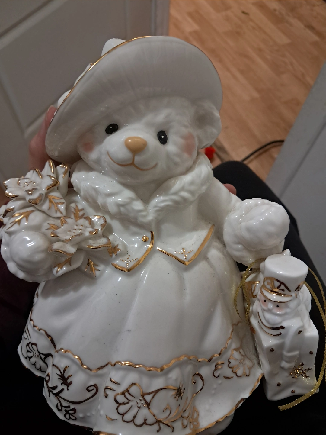 Vintage Mama bear porcelain Christmas statue. It's a bit dusty from storage. She's looking for a new loving home!