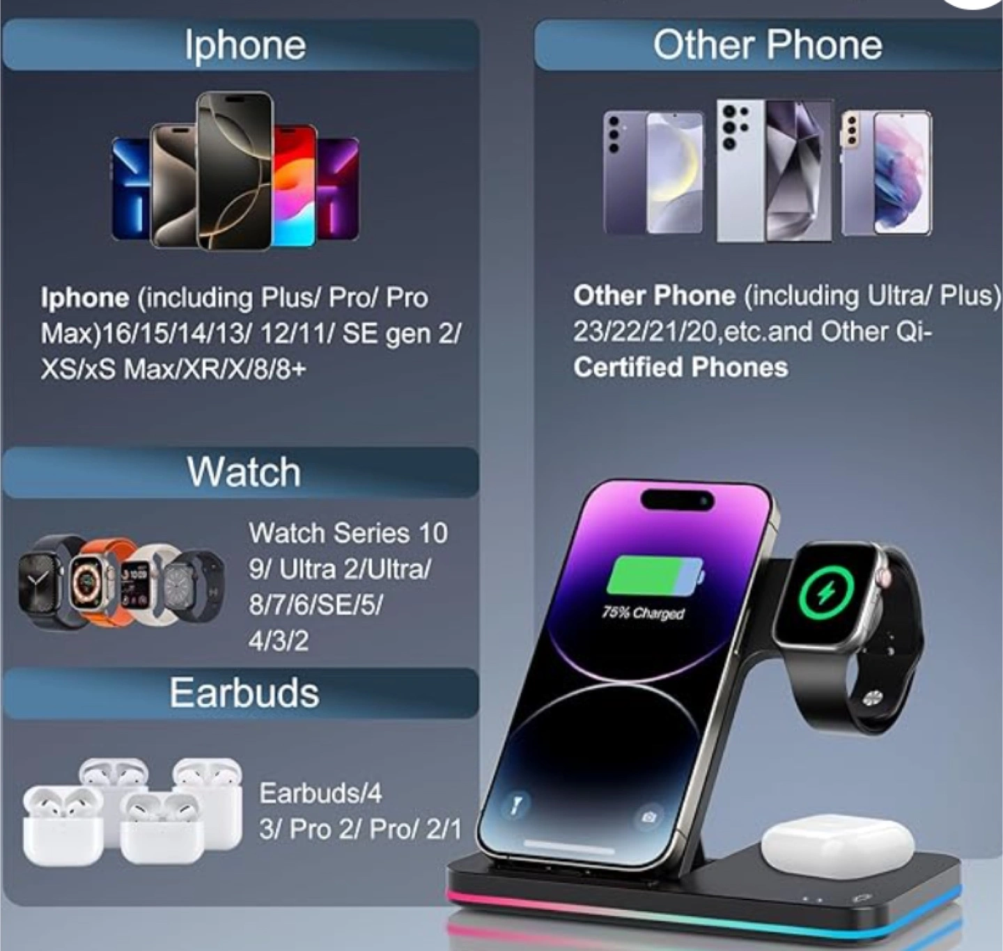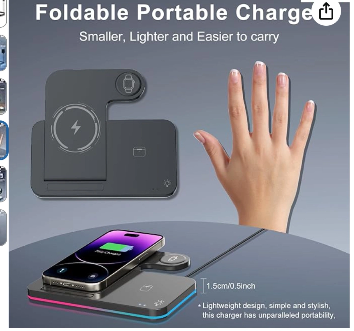 10Foldable portable Qi-certified charger. Charges iPhone, Apple Watch, and AirPods simultaneously. Smaller, lighter, and easier to carry. Lightweight design, simple and stylish.