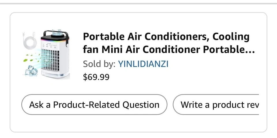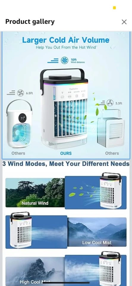Portable Air Conditioners, 1200ML Cooling fan Mini Air Conditioner with Remote Control,4 Wind Speed & 7 LED Light,3 Cool Mist& 2-8H Timer,Personal Air Conditioner Air Cooler for Room/Office (Black-1) I bought from Amazon for $70. Used it a couple times only, not using it anymore.