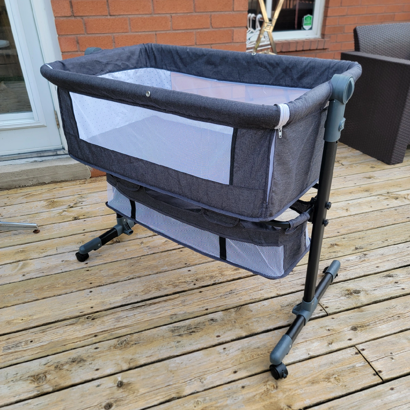 73Hi I am selling this Portable Bassinet & Bedside Sleeper. It is in Perfect Condition. Comes will all the attachments. The bed side sleeper can fit most beds, as its height can be adjusted from 29.5" to 35.5" 6 Adjustable Heights. Comes with Travel Bag