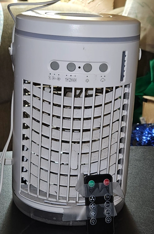 60Selling a portable fan that you canput ice and water in to make little a/c. , perfect for those hot days! It comes with a remote control for easy operation. The cooler has different fan speeds and timer settings (1H, 2H, 4H). It also has a light and a mist function. Great for personal use! this also changes colour's.
