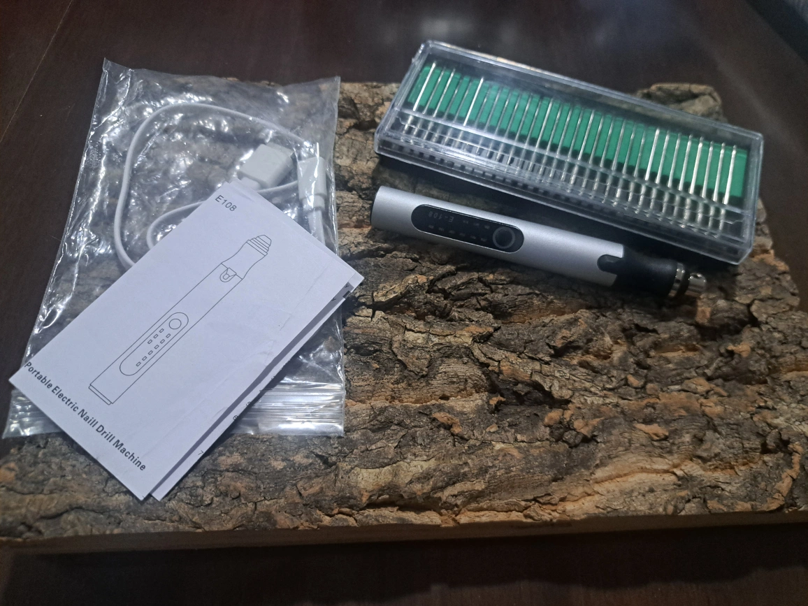 73Selling a portable electric nail drill machine, model E108. It comes with a variety of drill bits, a charger, and the original box. Perfect for at-home manicures and pedicures!