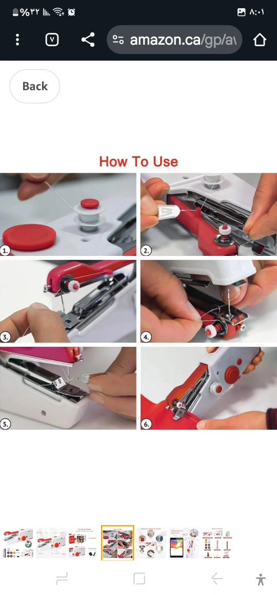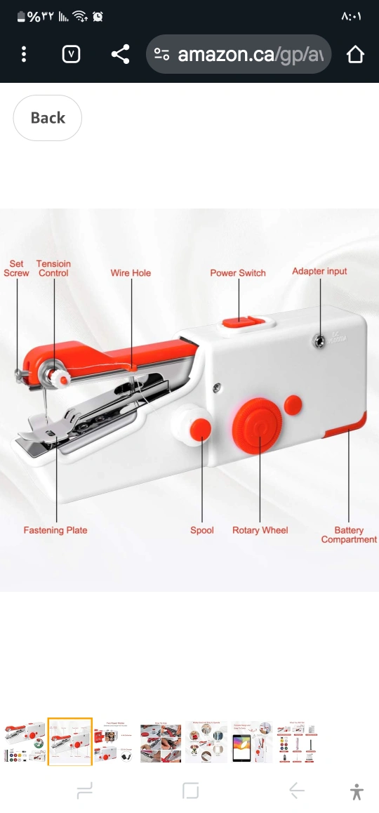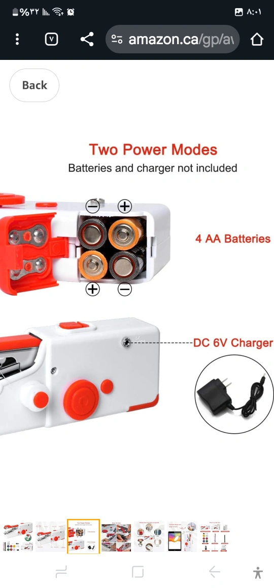 Compact and convenient sewing machine. Operates on batteries or with a power adapter. Easy to use, great for quick repairs. Includes instructions. Batteries and charger not included.