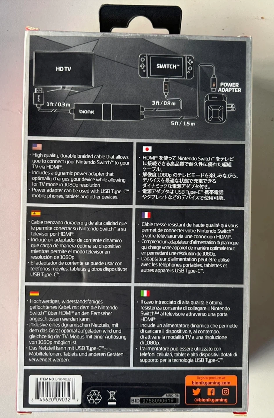 212New! Connect your Nintendo Switch to your TV with this Bionik TV Lynx kit! It supports HDMI at 1080p resolution. The kit includes a power adapter that dynamically charges your device while allowing you to play in 1080p resolution. It's also compatible with mobile phones, tablets, and other devices using USB Type-C. Compact design for travel and comes with cable management