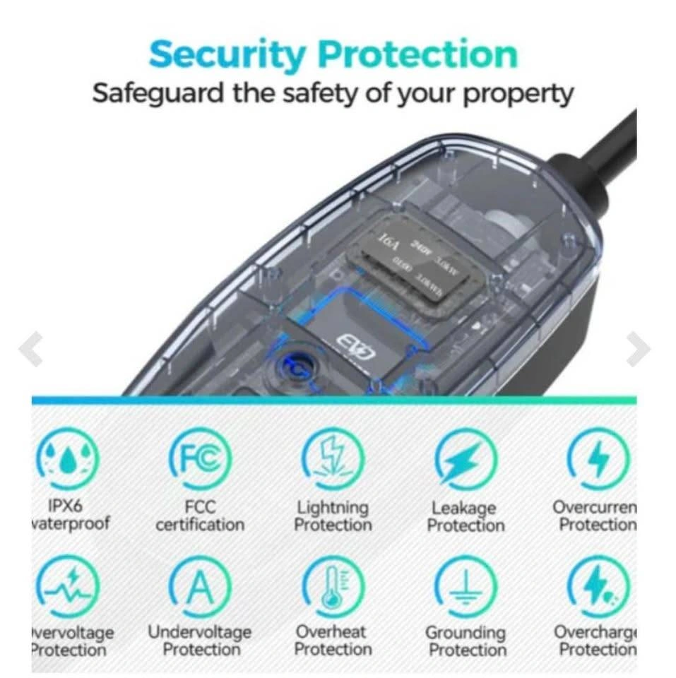 Selling a brand new high-quality EVDANCE EV charger, compatible with all J1772 electric vehicles and plug-in hybrids. Great for home or portable use. Tesla vehicles require a J1772-to-Tesla adapter (not included). Details: Level 1 (120V) and Level 2 (240V) charging options NEMA 6-20 plug (16A) and NEMA 5-15 adapter (12A) included 25-foot charging cable — long enough for most garages and driveways Compact and easy to carry — comes with storage/travel bag Built-in safety features: lightning, overheat, overcharge, overcurrent, undervoltage, and more CE certified with IP66-rated control box and EV connector Pickup in Oakville/Mississauga/Toronto Can deliver at an extra fee Message me if you're interested or have any questions. :)
