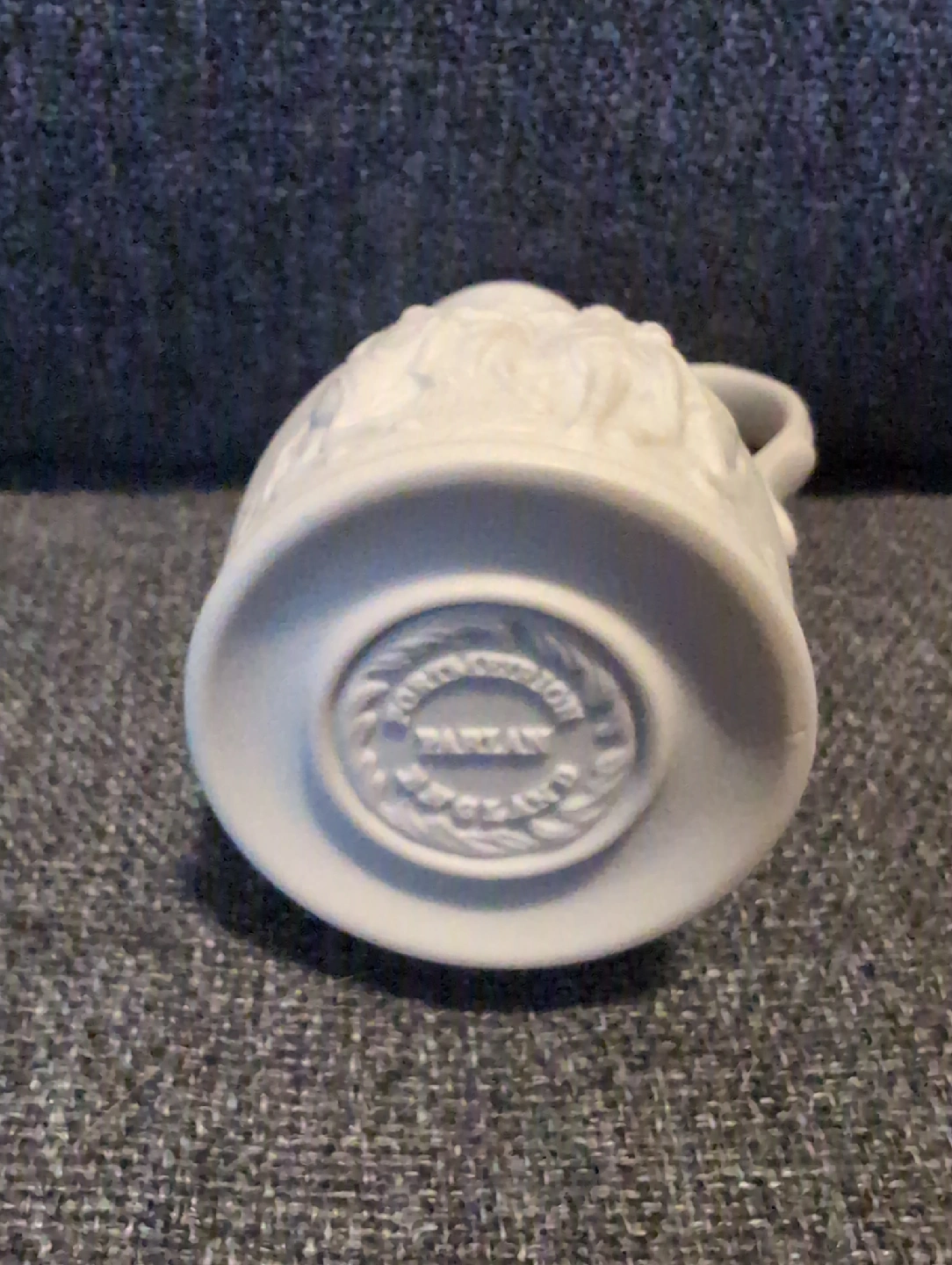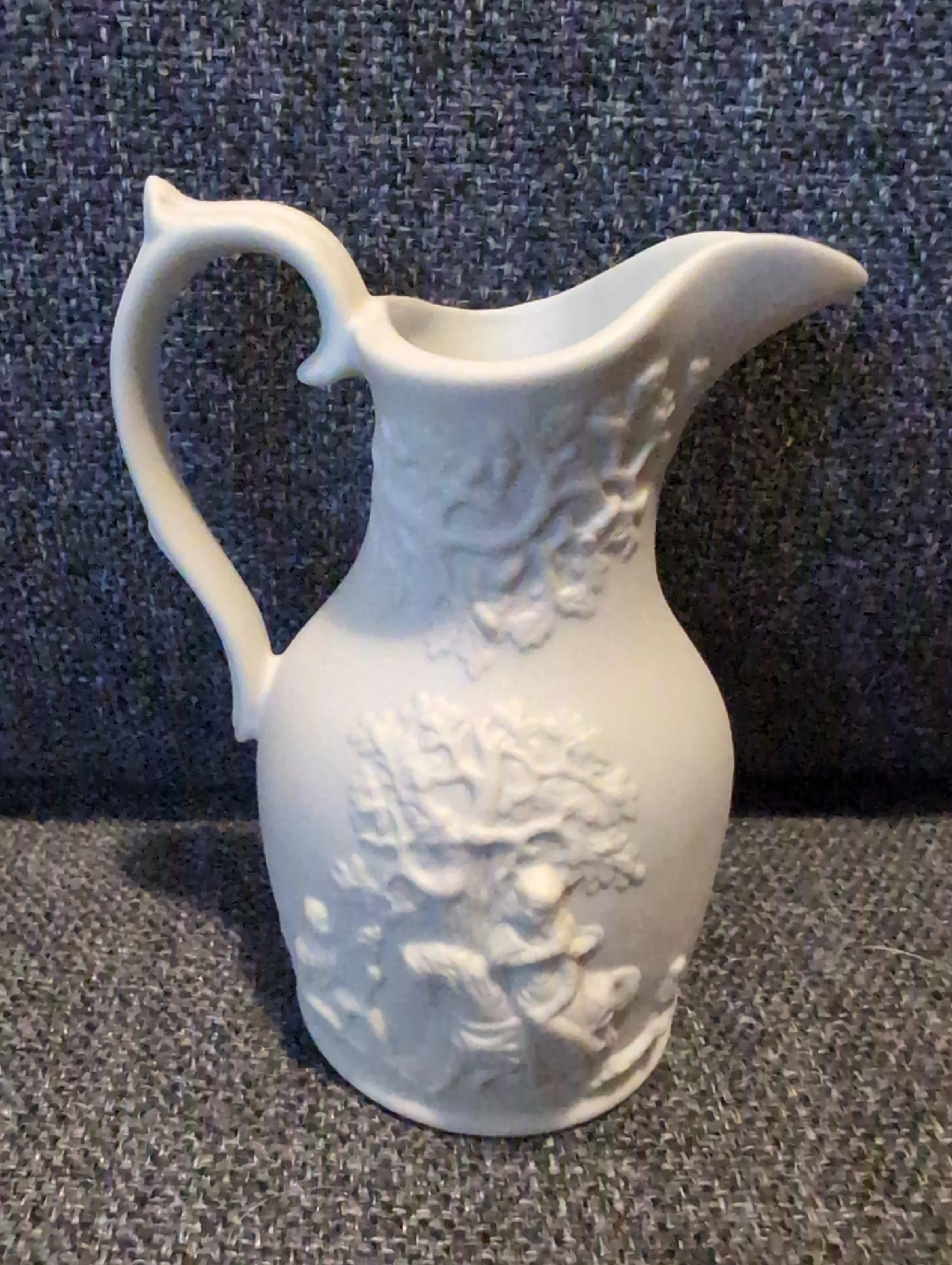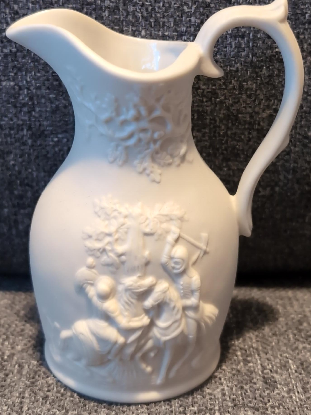 Selling a lovely white porcelain Portmeirion miniature jug with matte finish, entitled 'The Tournament'. Manufactured in England. It's in great shape and features a beautiful embossed design. Like new condition. Cash only. Prompt pick-up preferred.