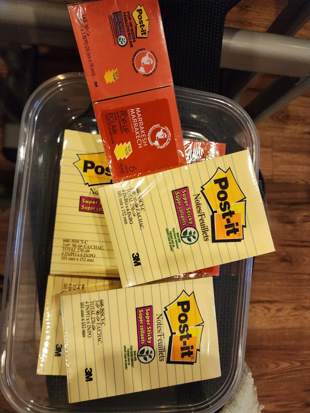 10Selling a mix of Post-it Super Sticky Notes and Pop-Up Notes! The Super Sticky Notes are yellow and measure 101 mm x 152 mm with 270 sheets total. The Pop-Up Notes are the Marrakech Eclair colour, sized at 76 mm x 76 mm. Perfect for all your note-taking needs.. for more info please contact me.