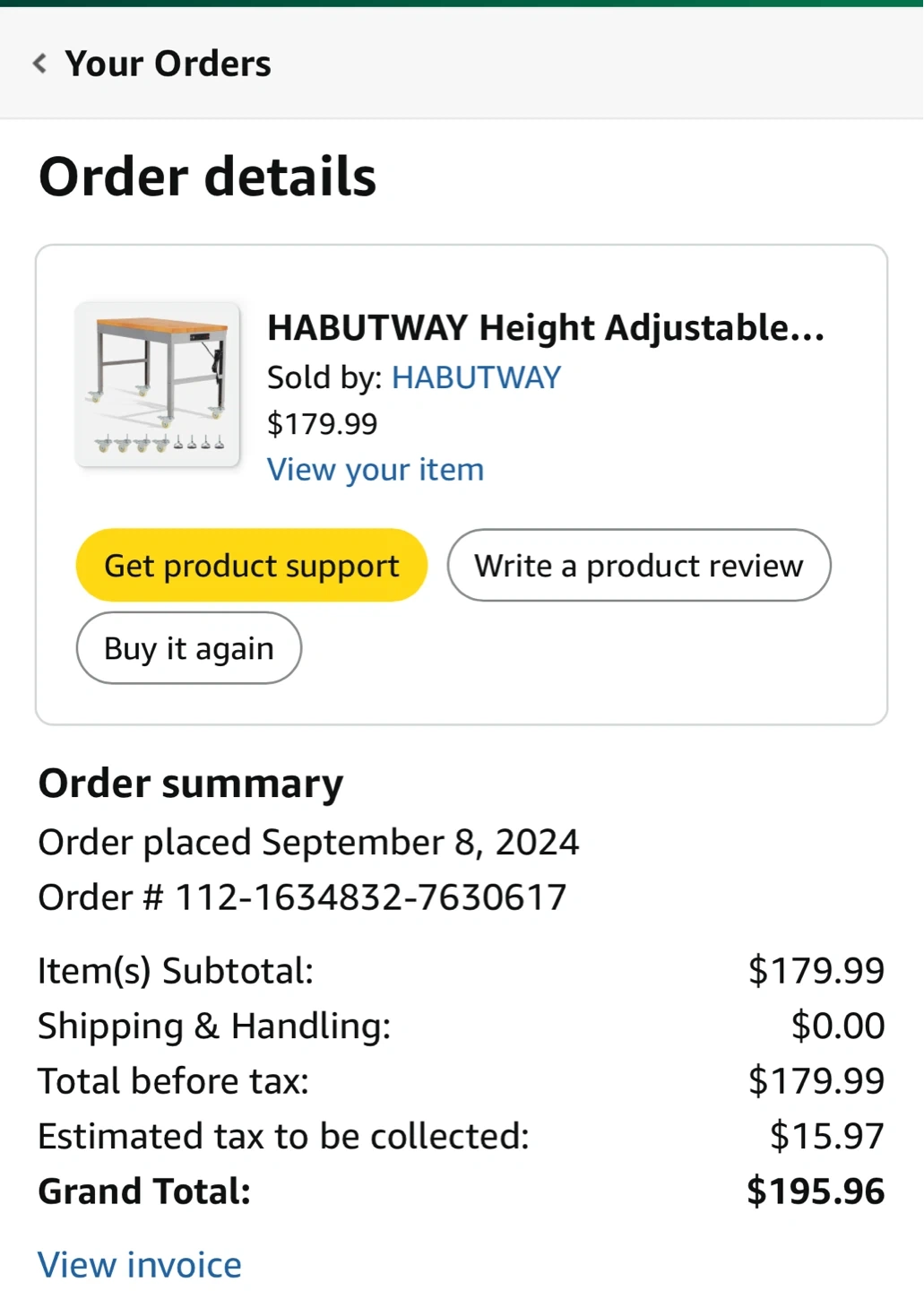 Buy & SellHABUTWAY Height Adjustable TableHABUTWAY Height Adjustable Table$117Selling a HABUTWAY height-adjustable table. I bought this on September 08, 2024, for $179.99 plus tax, totaling $195.96. It's in great conditionWHERE TO MEETBrooklyn children’s museumView MapSELLERverifiedKerryCrown Heights600 reviews0 chats·1 favorites·171 viewsSEND CHAT TO SELLERHi Kerry! I’m interested in your listing.Hi Kerry! I’m interested in your listing.Get the Karrot app to chatSign In to chat
