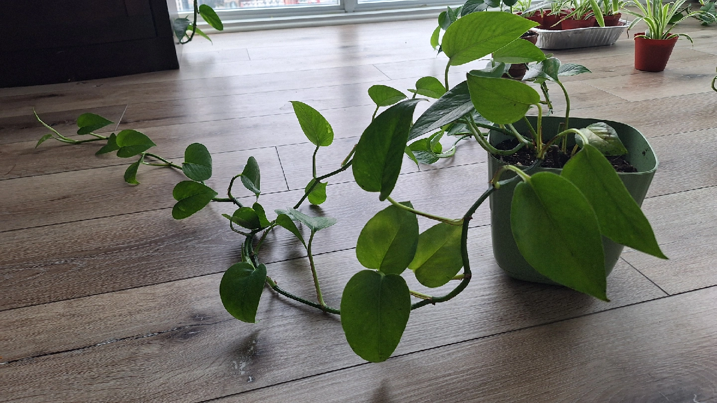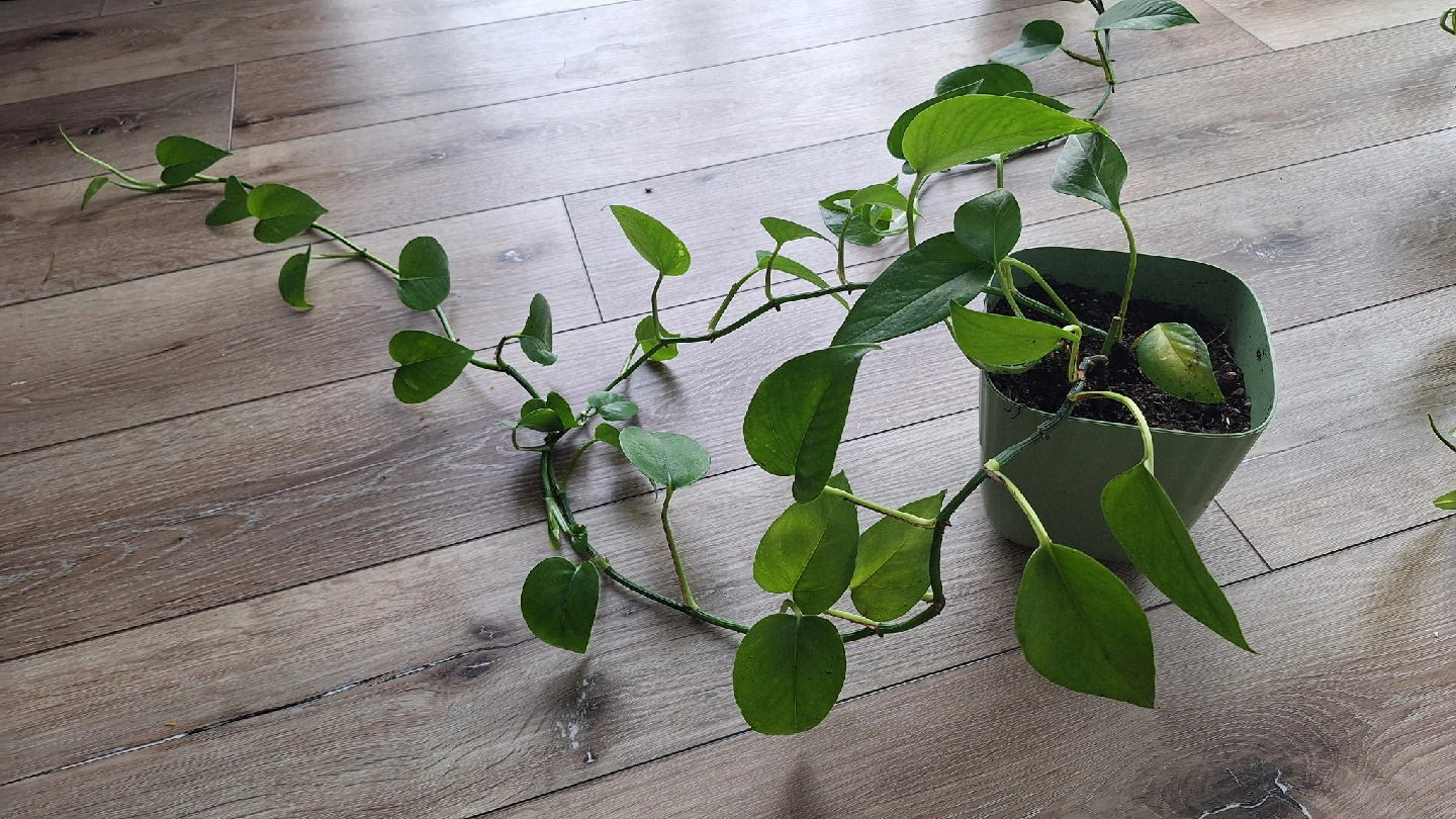26Selling a healthy golden pothos plant in a green pot! It's a great indoor plant, easy to care for, and adds a lovely touch of green to any space.