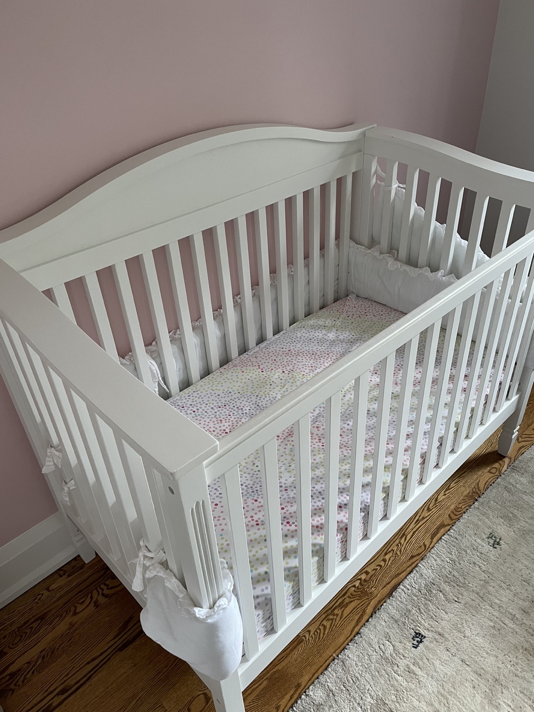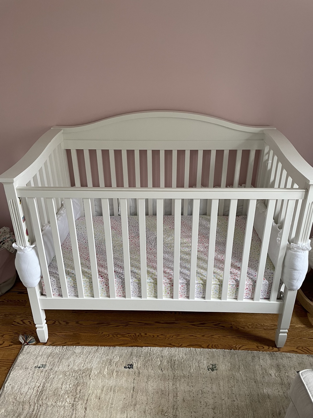 25Pottery barn Madison crib with mattress, set is included the convertor kit to toddler bed, pottery barn bumper, pottery barns bed skirt, 2 mattress protectors, 4 pottery barns fitted sheets. Mattress is organic and purchased 1000$+