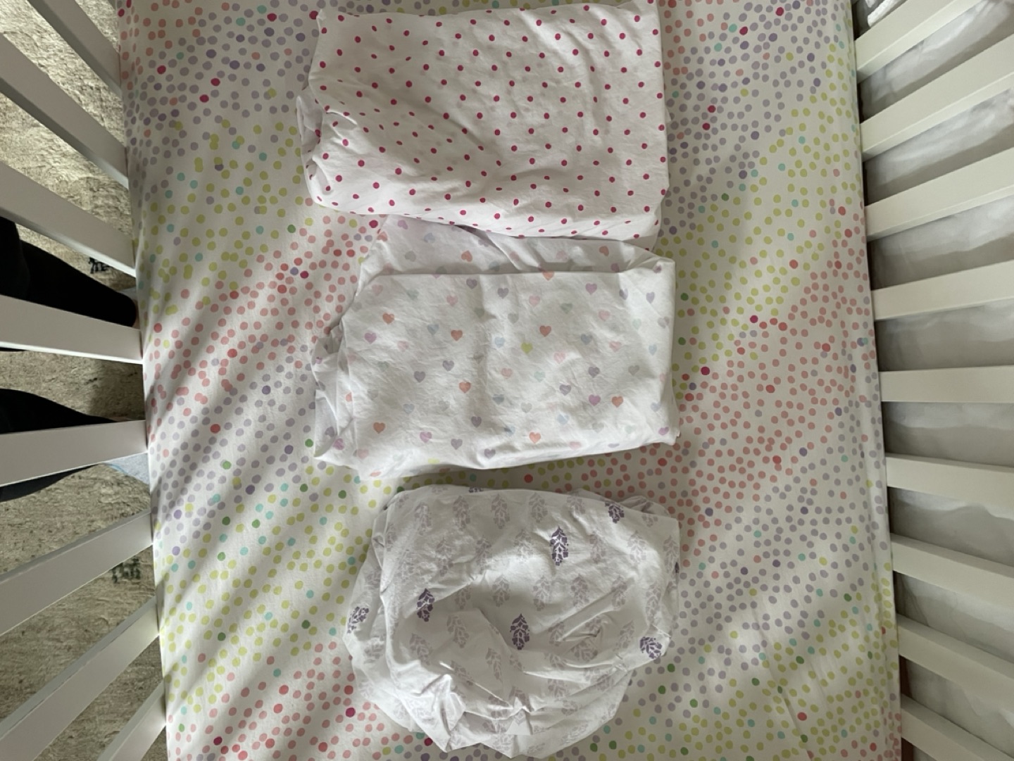 IKEA SNIGLAR Crib, mattress, protector and bedsheets