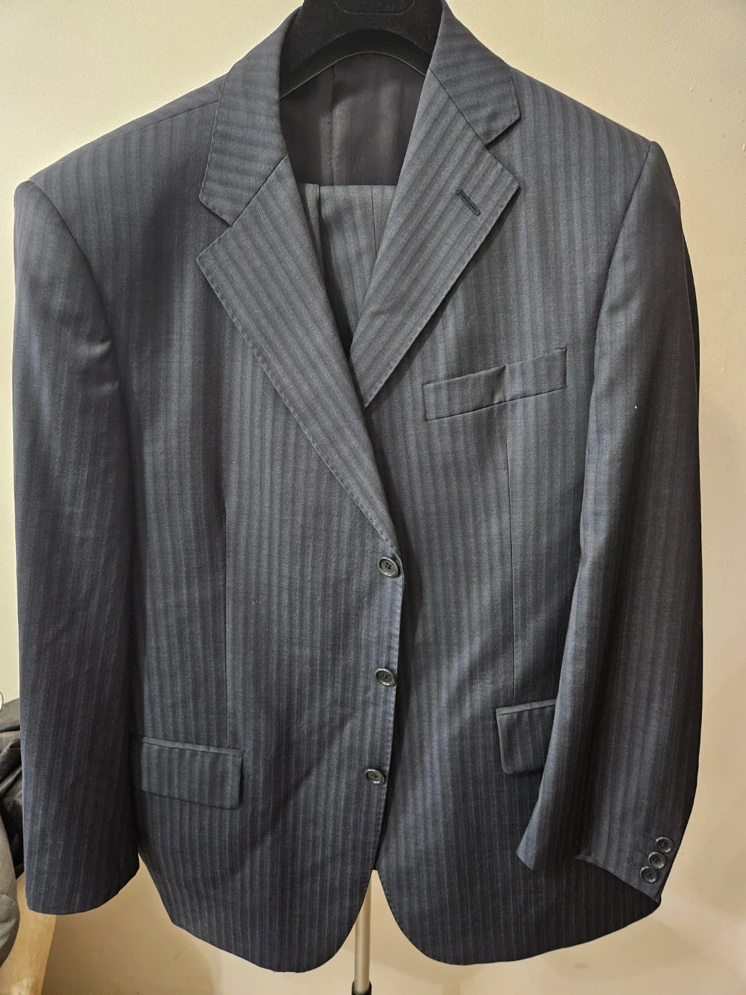 Sizes 44R jacket and size 36 pants. These were selling in stores between $1000-$1200 each. Total value of all suits $20,000..Take all only $20 each!!. Great price!!!. Change your whole suit wardrobe and wear a different suit every day for 1 month. Cash only. Must pickup ASAP sheepshead bay brooklyn.