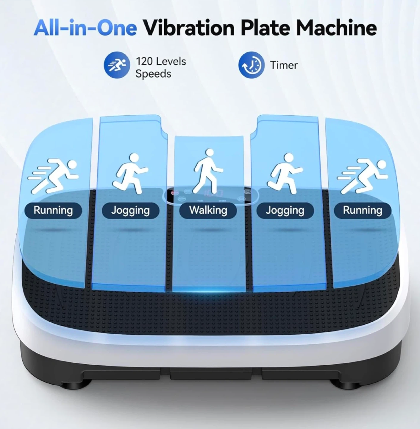 This all-in-one vibration plate machine comes with resistance bands and a remote control. It offers 120 speed levels for a customized workout. The curved design is built for deeper waves and better workouts.
