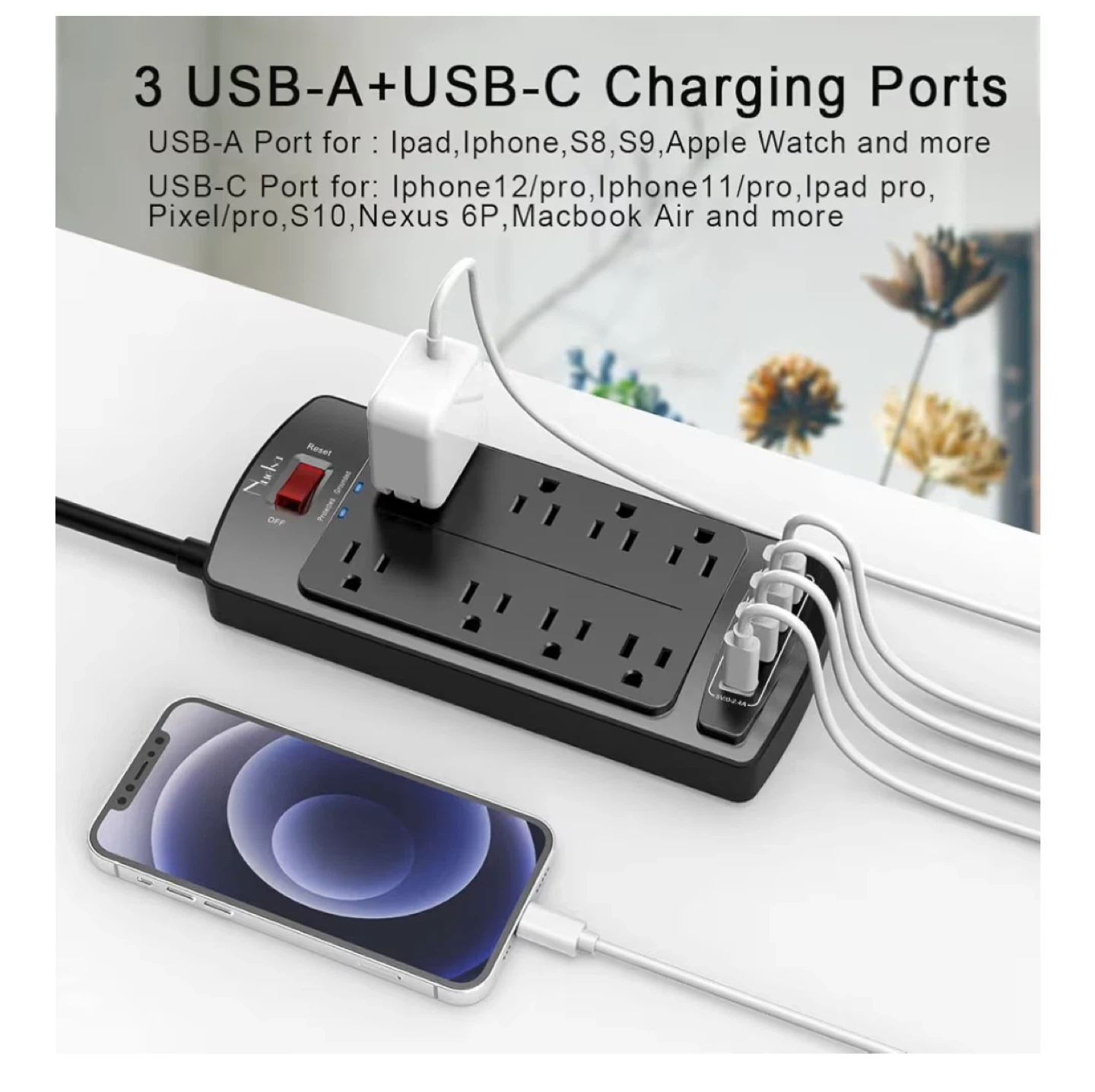 Power Strip 6ft with 8 AC Outlets and 3 USB Ports