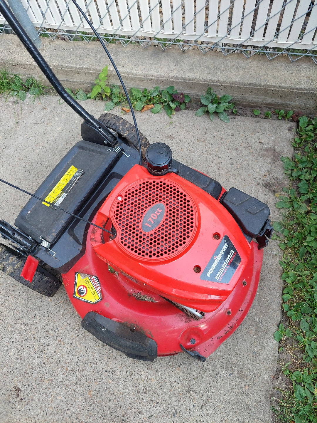 10Selling a PowerSmart lawn mower with a 170cc gasoline engine. It shows some signs of use, but it's still functional. Perfect for smaller yards.. have the front wheels but they have to get attached on ( welded).. sold as is..no delivery