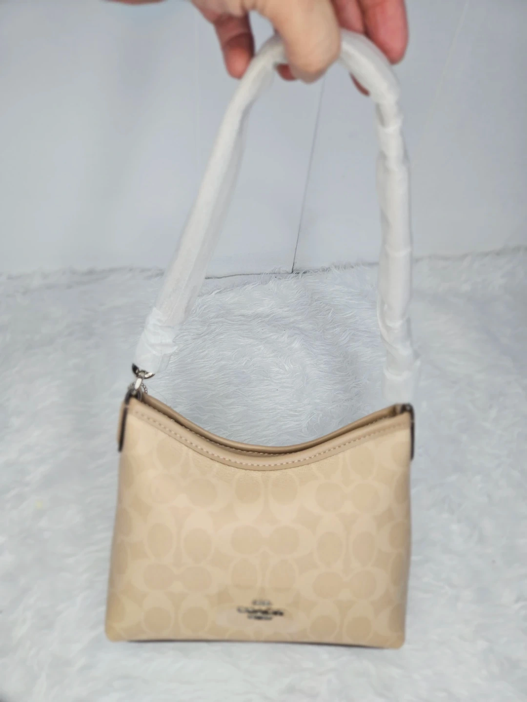This is a brand new Coach shoulder bag in beige jacquard. It’s a stylish and versatile accessory that’s never been used. Perfect for adding a touch of elegance to any outfit!