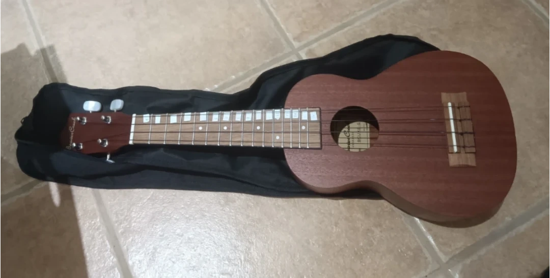 This is a Beaver Creek BCUKE-S ukulele. It's a great starter instrument for anyone looking to learn. Comes with a black gig bag for transport and protection.