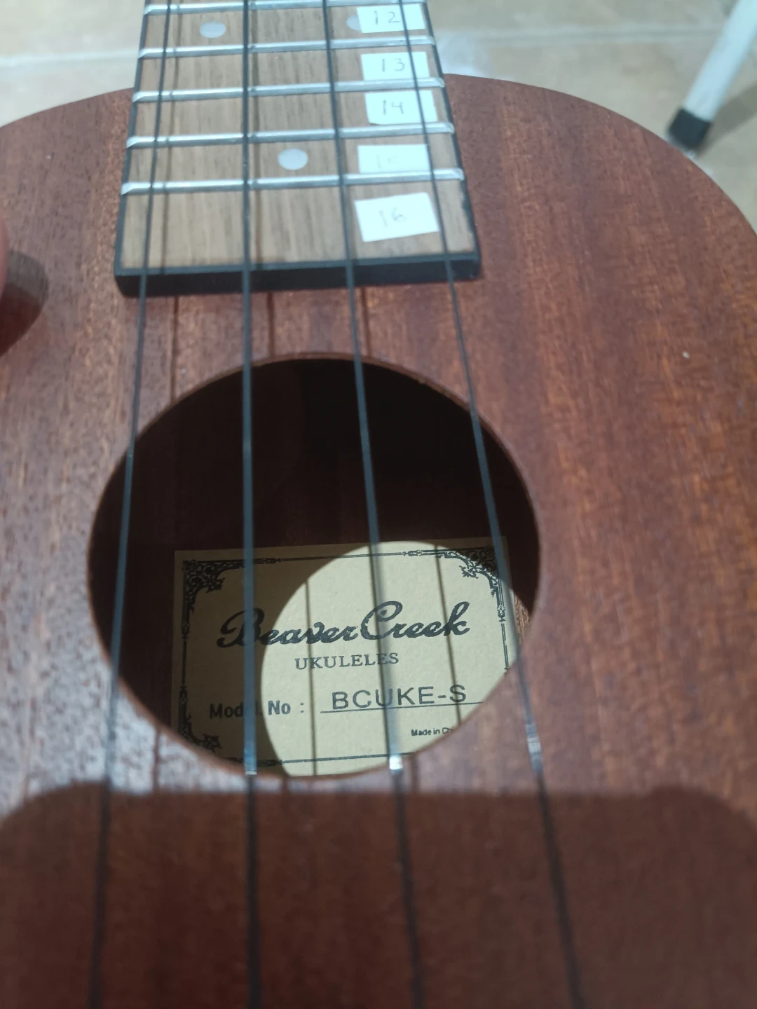 This is a Beaver Creek BCUKE-S ukulele. It's a great starter instrument for anyone looking to learn. Comes with a black gig bag for transport and protection.