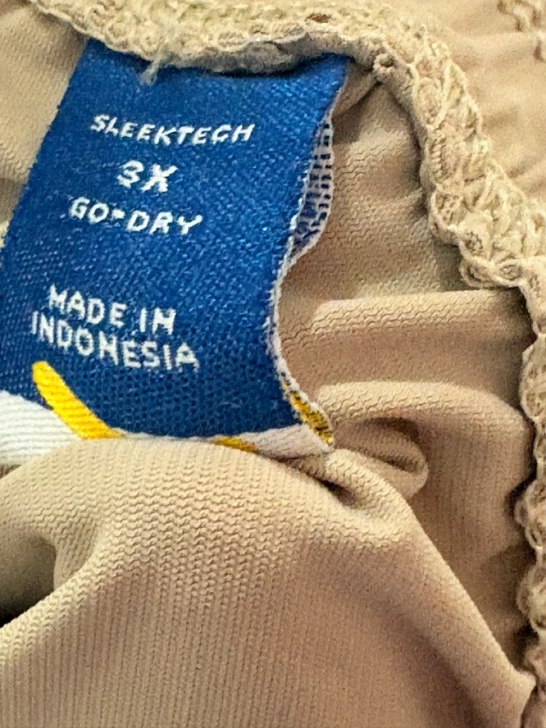 These SleekTech cargo joggers are a size 3X and feature a quick-dry fabric. They're made in Indonesia and have zippered pockets and cargo pockets. These pants are great for active days or casual wear!