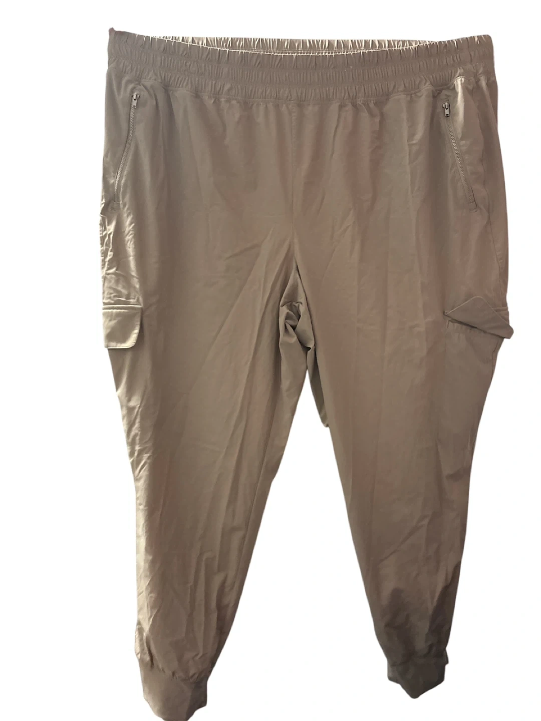 These SleekTech cargo joggers are a size 3X and feature a quick-dry fabric. They're made in Indonesia and have zippered pockets and cargo pockets. These pants are great for active days or casual wear!
