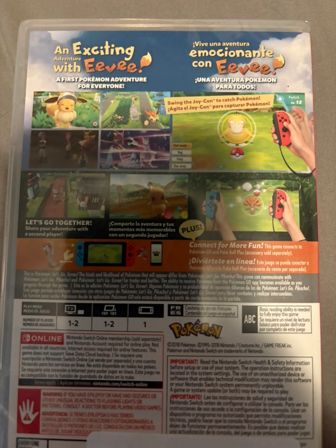 copy of Pokemon Let's Go Eevee for the Nintendo Switch! It's a fun adventure game for everyone