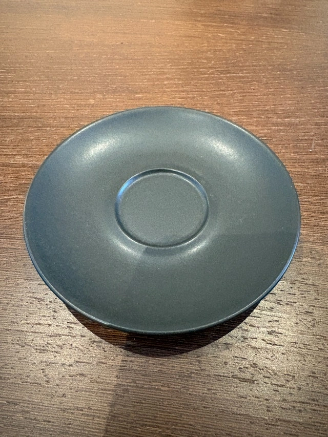 Brand new Denby Jet Espresso Cup & Saucer in Matte Black. Cup size: 2-2/3" x 2-1/4". Four available at $15.00 each. Cash accepted, cashless payment accepted. Curbside pickup available.